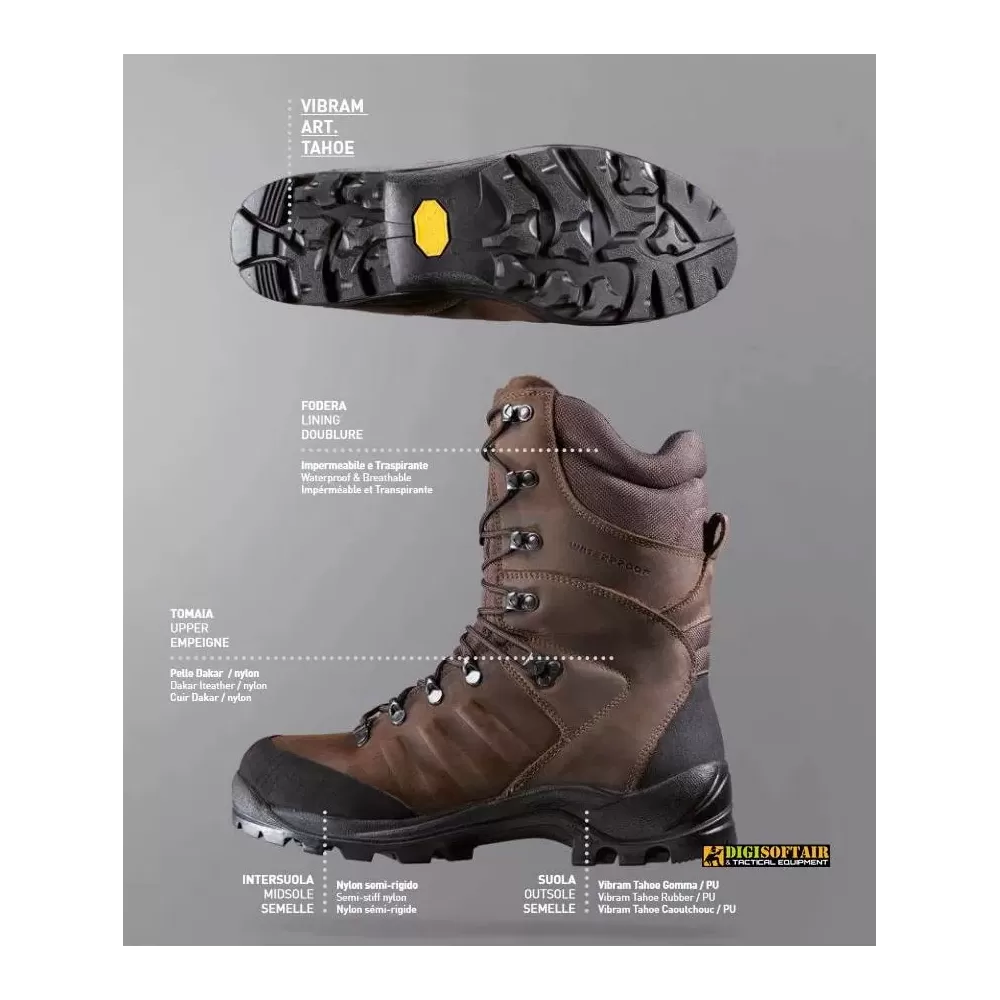 High hunting boot ideal for lovers and professionals of the sector. Suitable for hiking in the woods. In Dakar leather, with waterproof and breathable lining, Vibram sole.