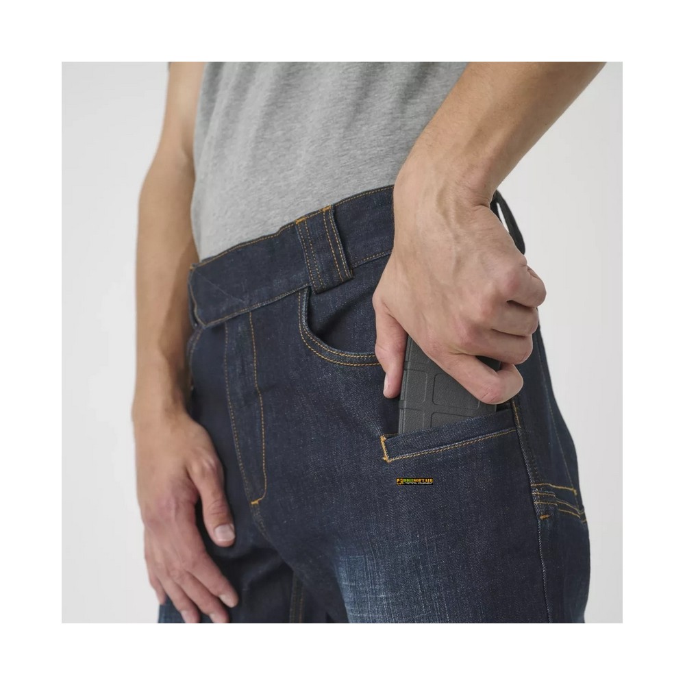 Greyman Jeans - Denim Mid by Helikon-Tex: low-profile urban pants with two-way stretch Denim Mid fabric, adjustable waist, belt compatibility up to 50 mm and 9 functional pockets.