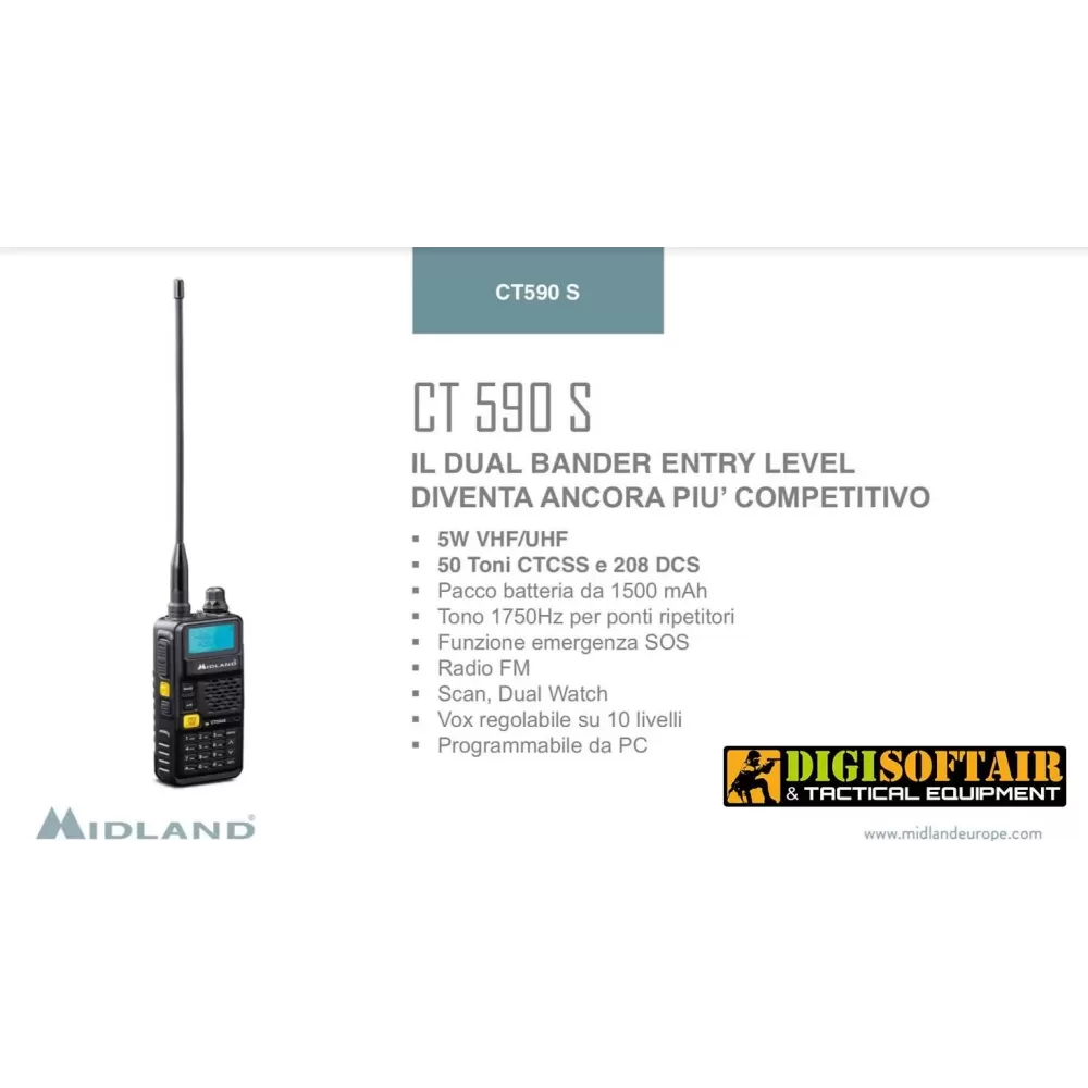 A powerful and compact radio, the Midland CT590 S is designed for professional use, security, emergency response, and outdoor activities. Its dual-band VHF/UHF capabilities ensure reliable and high-quality communication in any scenario.
