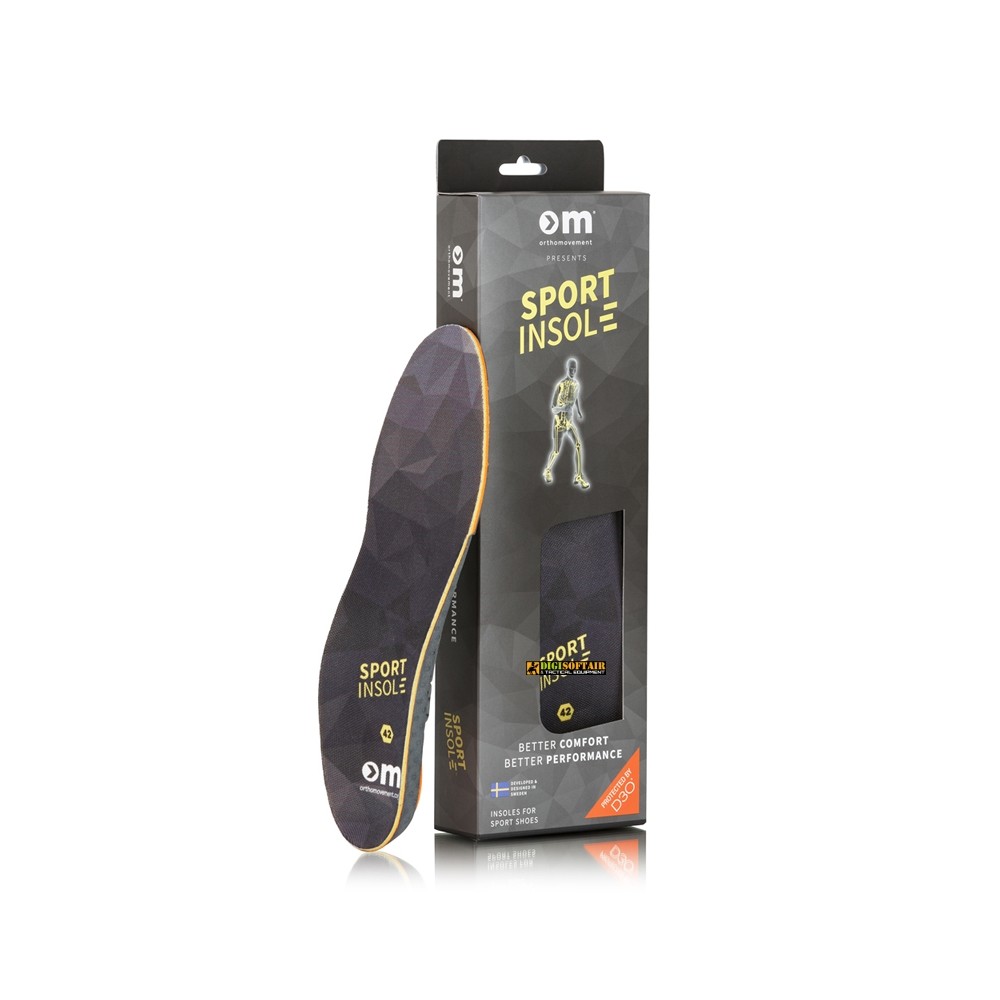 Ortho Movement Sport Insole Tech - hybrid EVA insole with anatomical heel cup, medium arch support and impact zones for comfort and sport performance.