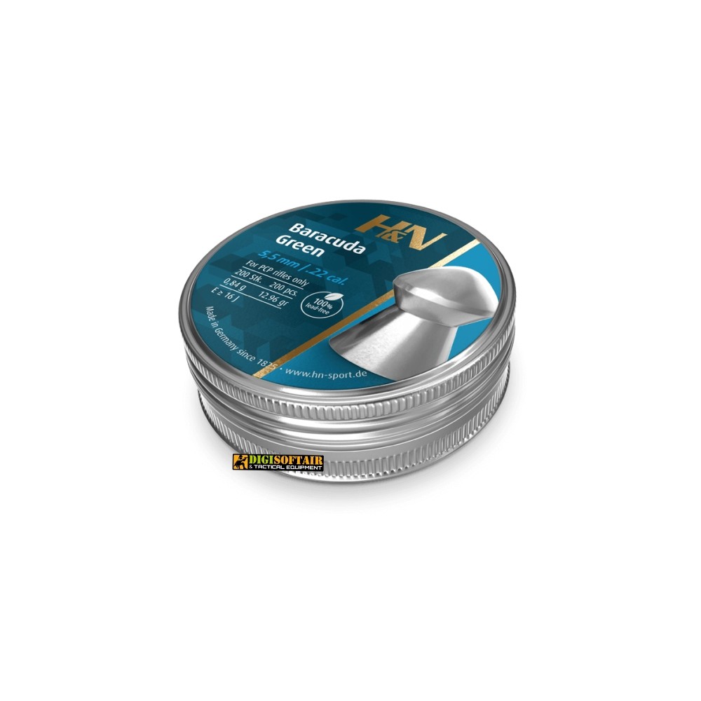 1 × tin/box with 200 × H&N Baracuda Green 5.5 mm pellets.
