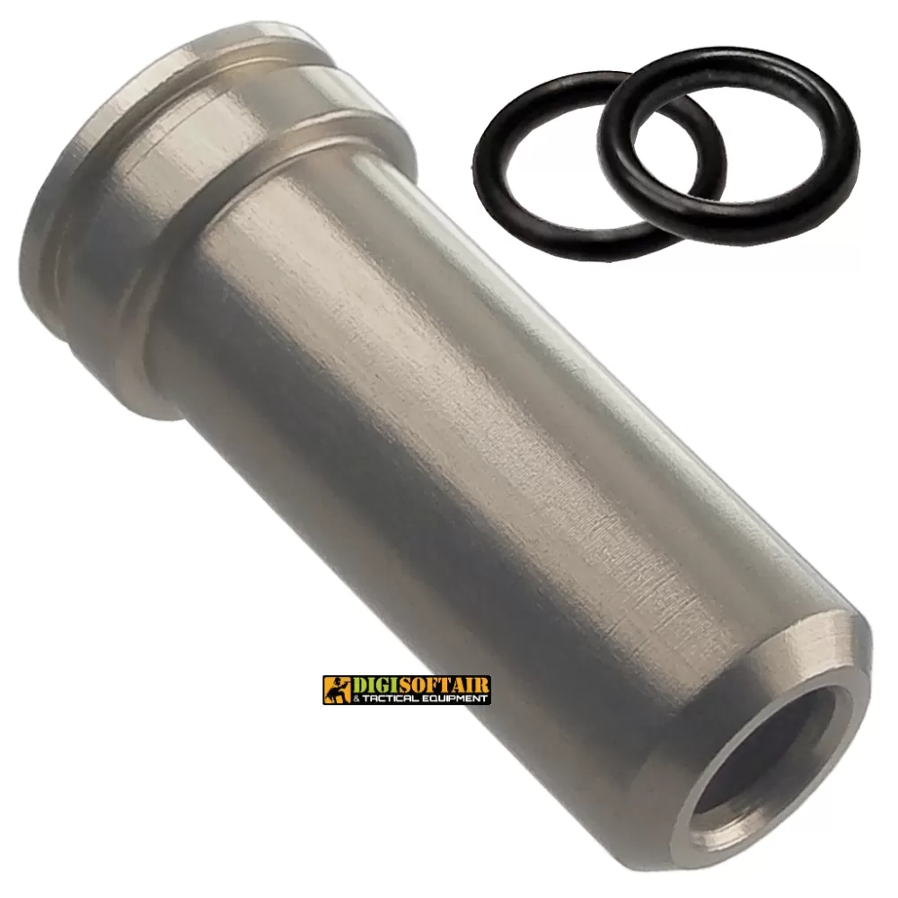 The nozzle in ERGAL for P90 series with sealing O-ring (SP90E) is an essential component for airsoft replicas, designed to ensure optimal performance and long-lasting durability. Made of ERGAL, a lightweight and resistant material, this nozzle is machined from solid material and processed using CNC for superior precision and resistance.