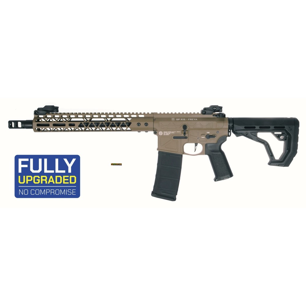 FREYA R15 SKELETON 13" Gen2 full-metal AEG in Half Tan with preinstalled Eagle ETU opto-magnetic, 6.03 mm 330 mm tightbore, and upgraded V2 gearbox with 8 mm bearings — ready to run and upgrade.
