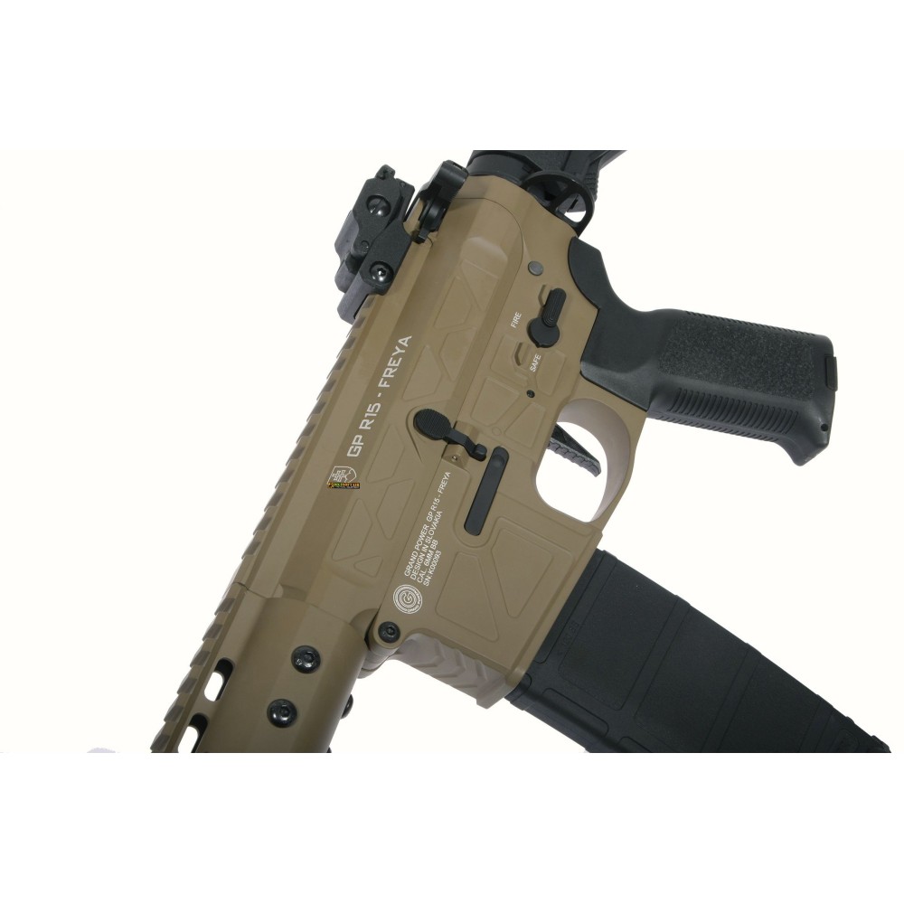 The FREYA R15 SKELETON 13" Gen2 from Delta Armory is a next-generation AEG platform engineered for players who want advanced electronics, reinforced internals and immediate out-of-the-box performance with wide upgrade potential. The Half Tan finish provides a subdued tactical look suitable for desert or hybrid loadouts while preserving a professional operational profile.