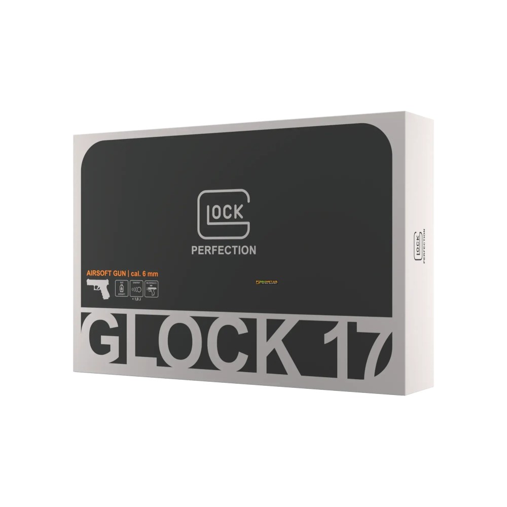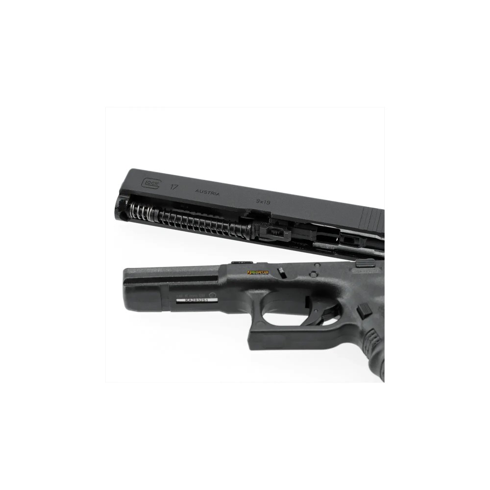 Gas-operated GLOCK 17 Gen3 replica with metal slide, polymer frame, adjustable hop-up and approx. 23-round magazine — built for realistic handling.