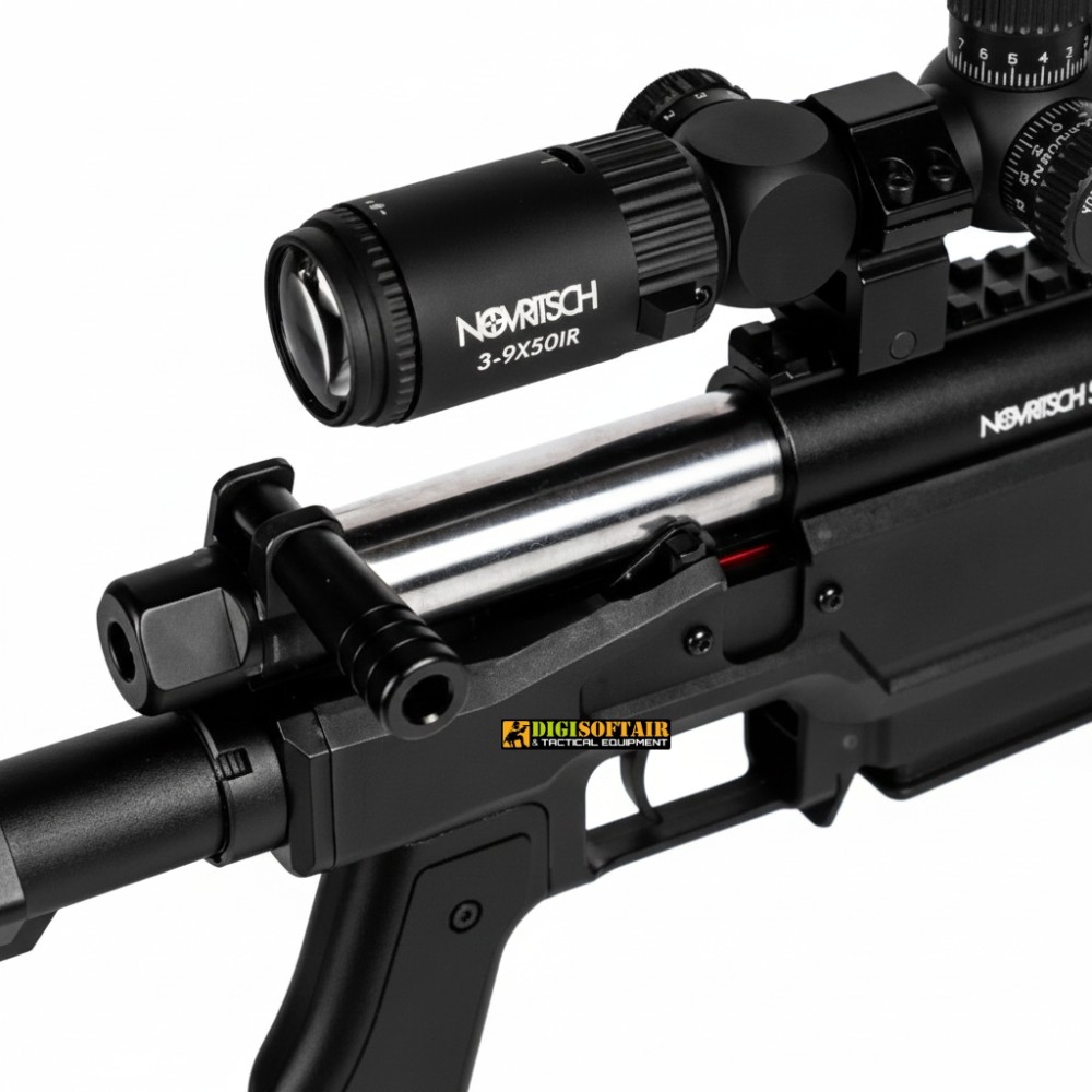 The Novritsch SSG11 is a precision-oriented airsoft sniper rifle built on the VSR-10 platform, crafted to deliver consistent performance and long-term durability. The receiver and barrel are CNC-machined with reinforced thread inserts to ensure structural stability under stress.