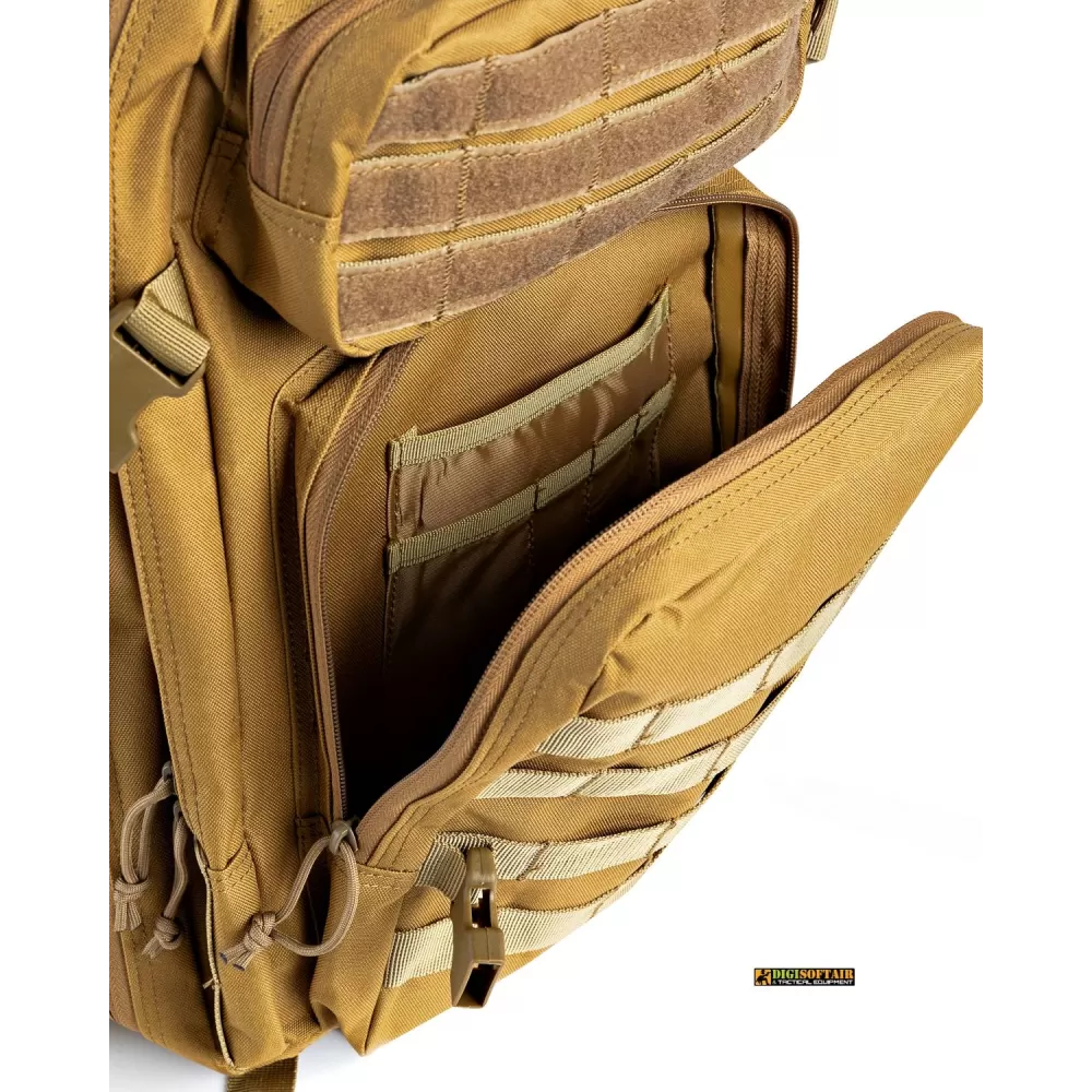 Thanks to its sturdy carry handle and evacuation strap, along with the Coyote Tan color, this backpack is a strategic choice for blending into desert or woodland environments while ensuring practicality and durability.