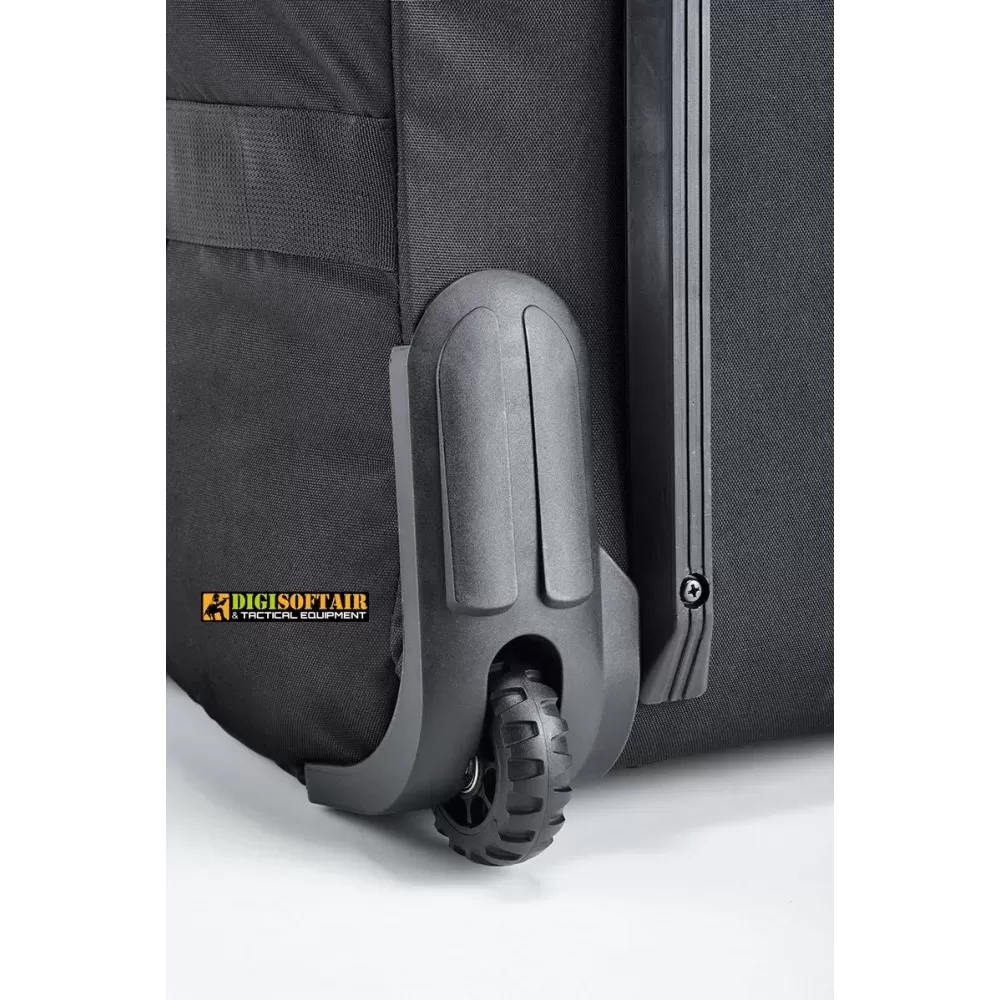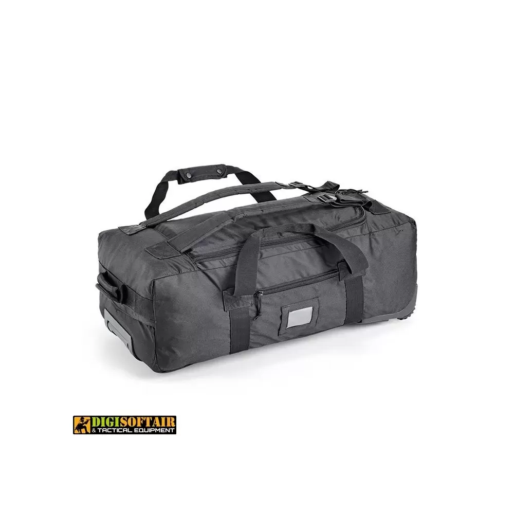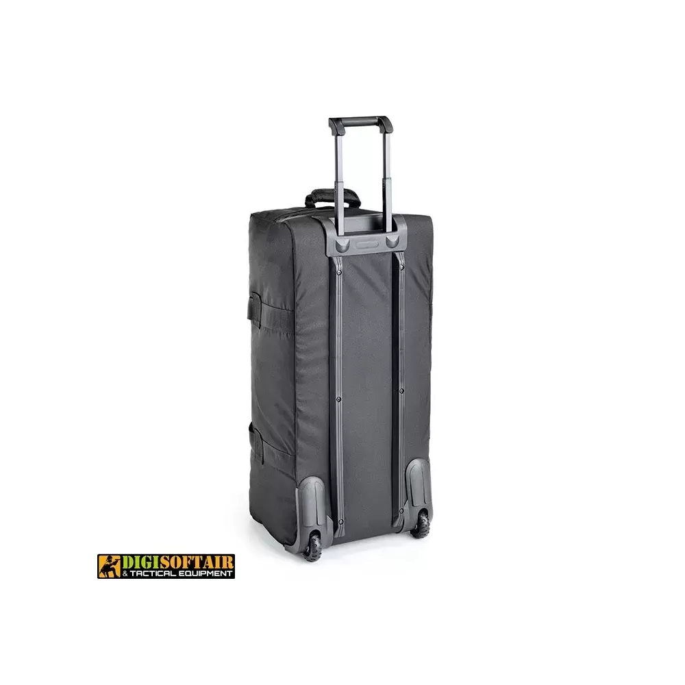 70-litre trolley duffel in Cordura 600D, engineered for bulky kit: robust wheels, retractable drag handle and padded shoulder straps for versatile carry options.