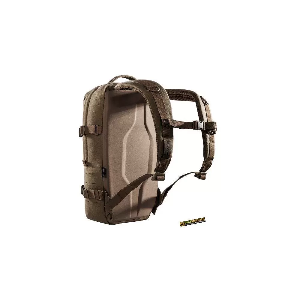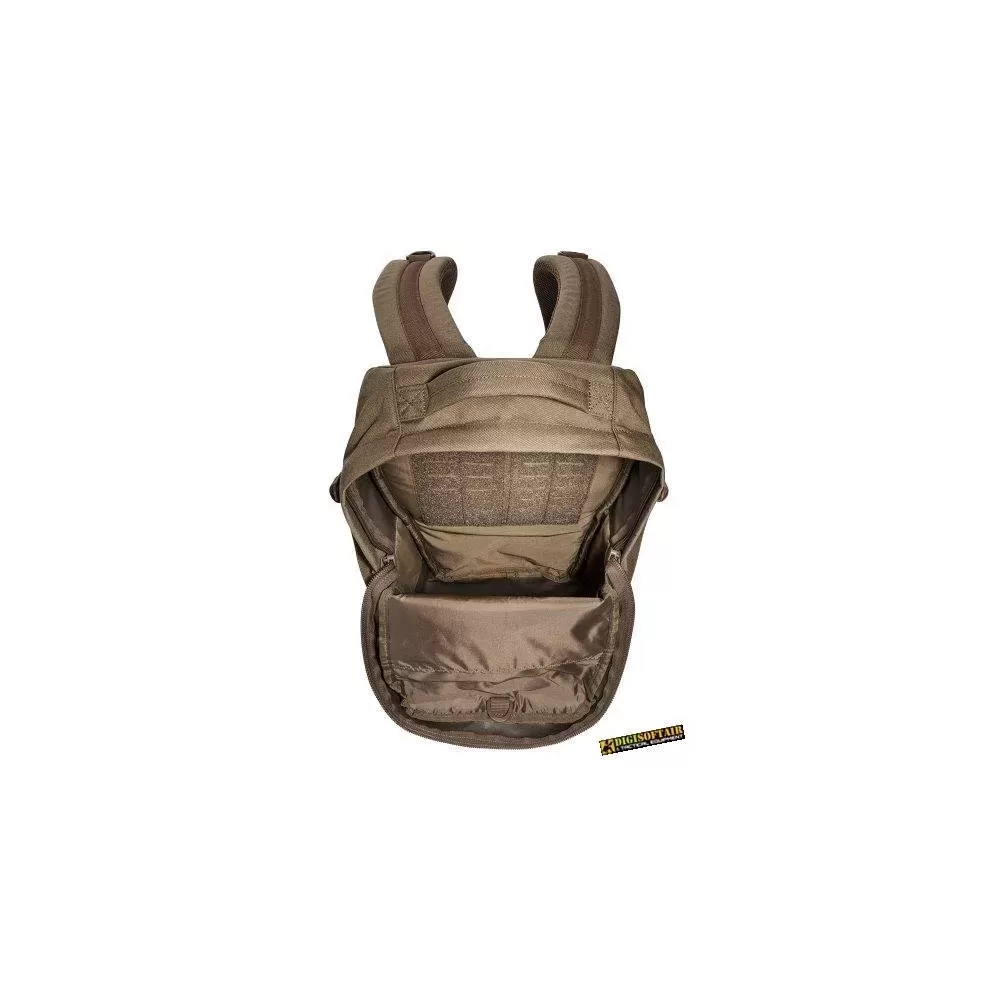 Modular daypack with 18 liters of volume. The backside of the main compartment of the daypack is lined with MOLLE hook panels for attaching compatible loop pouches. The flat zipper front pocket is great for documents while the laser-cut MOLLE on the front and sides allow you to add gear to suit your needs.