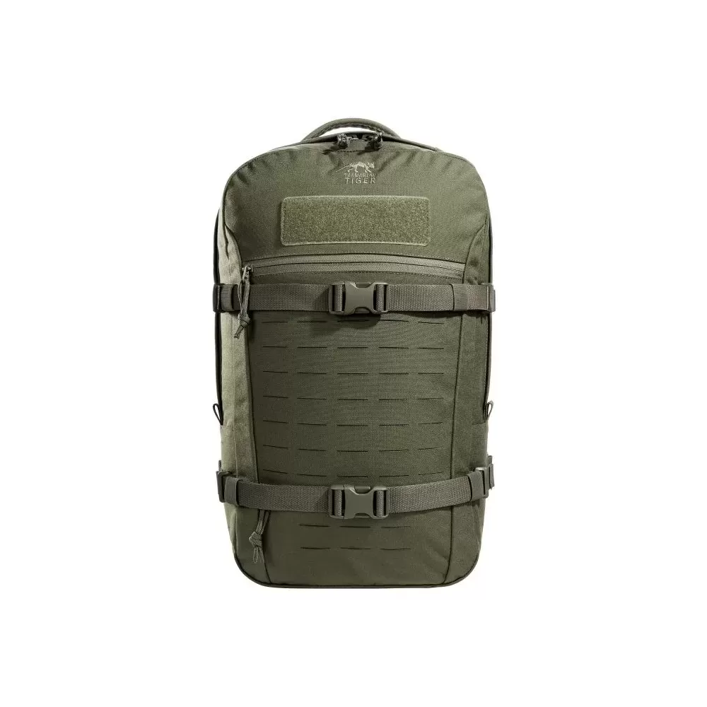 Modular daypack with 23 liters of volume. The backside of the main compartment of the daypack is lined with MOLLE hook panels for attaching compatible loop pouches. It is also designed to hold a 15.4″ laptop. The flat zipper front pocket is great for documents while the laser-cut MOLLE on the front and sides allow you to add gear to suit your needs.
