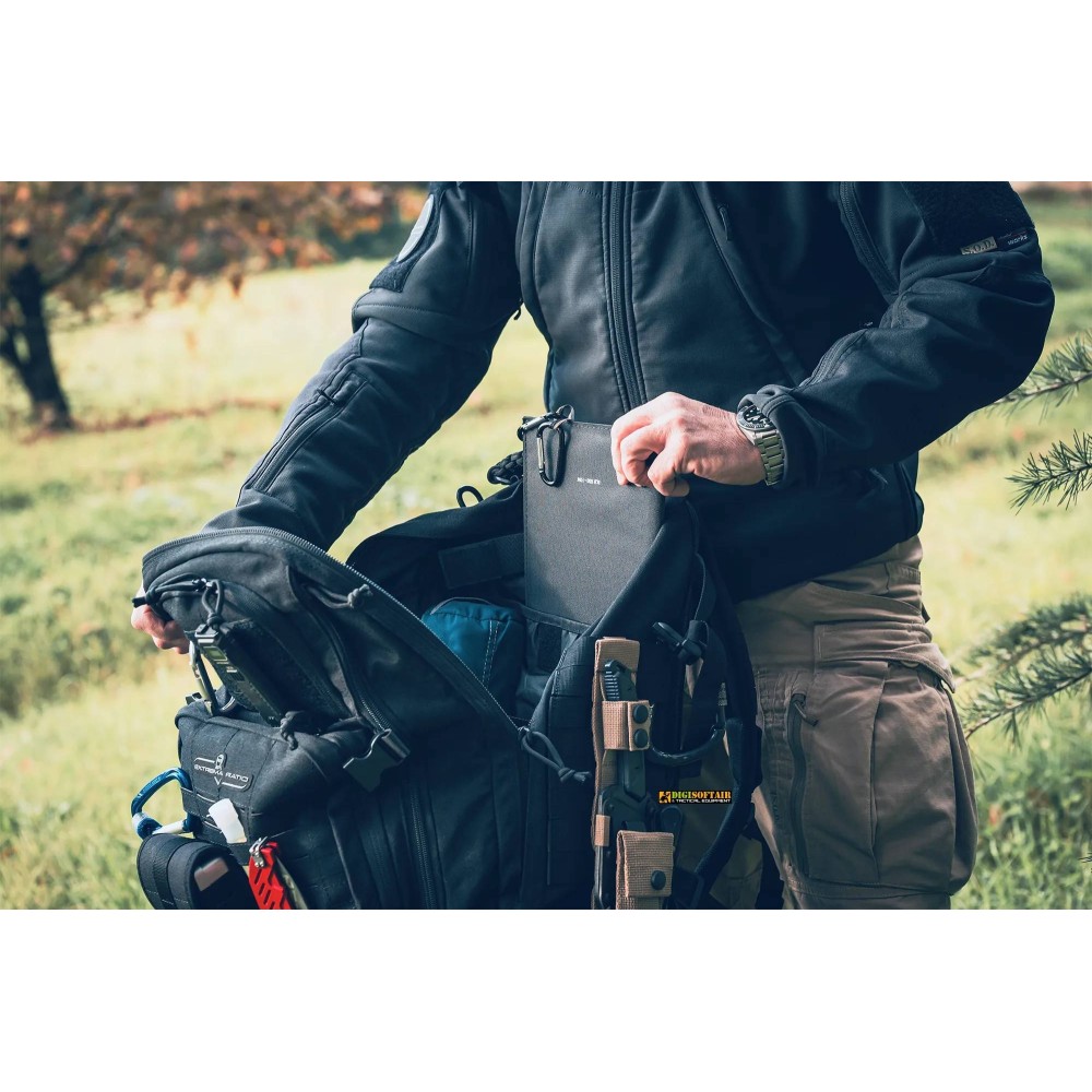 The SENTINEL line is engineered for users who demand organized functionality without overt tactical styling: clean lines, durable materials and an internal layout designed for operational EDC, urban and outdoor use. The pack features modular compartments (laptop sleeve, hydration bladder bay, pouches and survival kit pockets), full-zip access and quick-draw pockets for immediate tool retrieval. A reinforced back panel and an internal pocket designed to accept ballistic plates allow the bag to serve as a passive protective support when needed, useful in high-risk urban environments or remote settings. The braided paracord handle doubles as field cordage for emergency fixes or first aid uses.