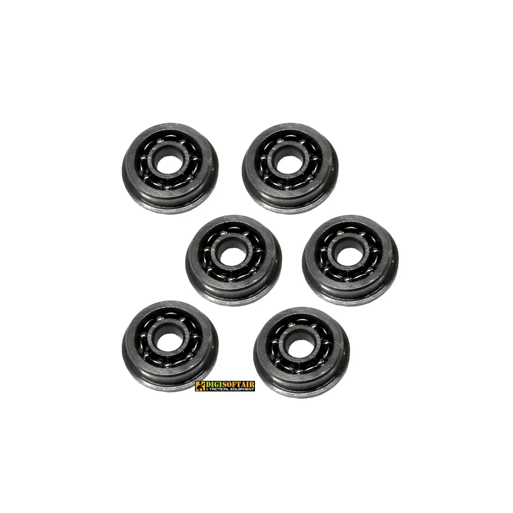 9 mm steel bearing bushings with open bearing (B9CA). The adoption of these bushings decreases the friction due to the rotation of the gears.