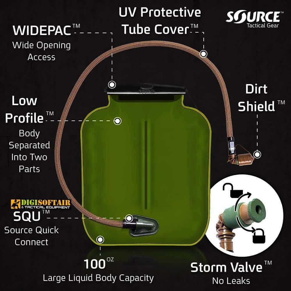 Built to endure harsh environments, this 3 L hydration bladder combines durability with usability. The co-extruded body maintains neutral water taste, while the internal antimicrobial-treated film limits biofilm buildup. The wide opening allows easy ice insertion and hassle-free cleaning. Designed for tactical contexts, MOLLE mounting compatibility and quick-connect tube integration make it ideal for military, airsoft and long-range outdoor activities.