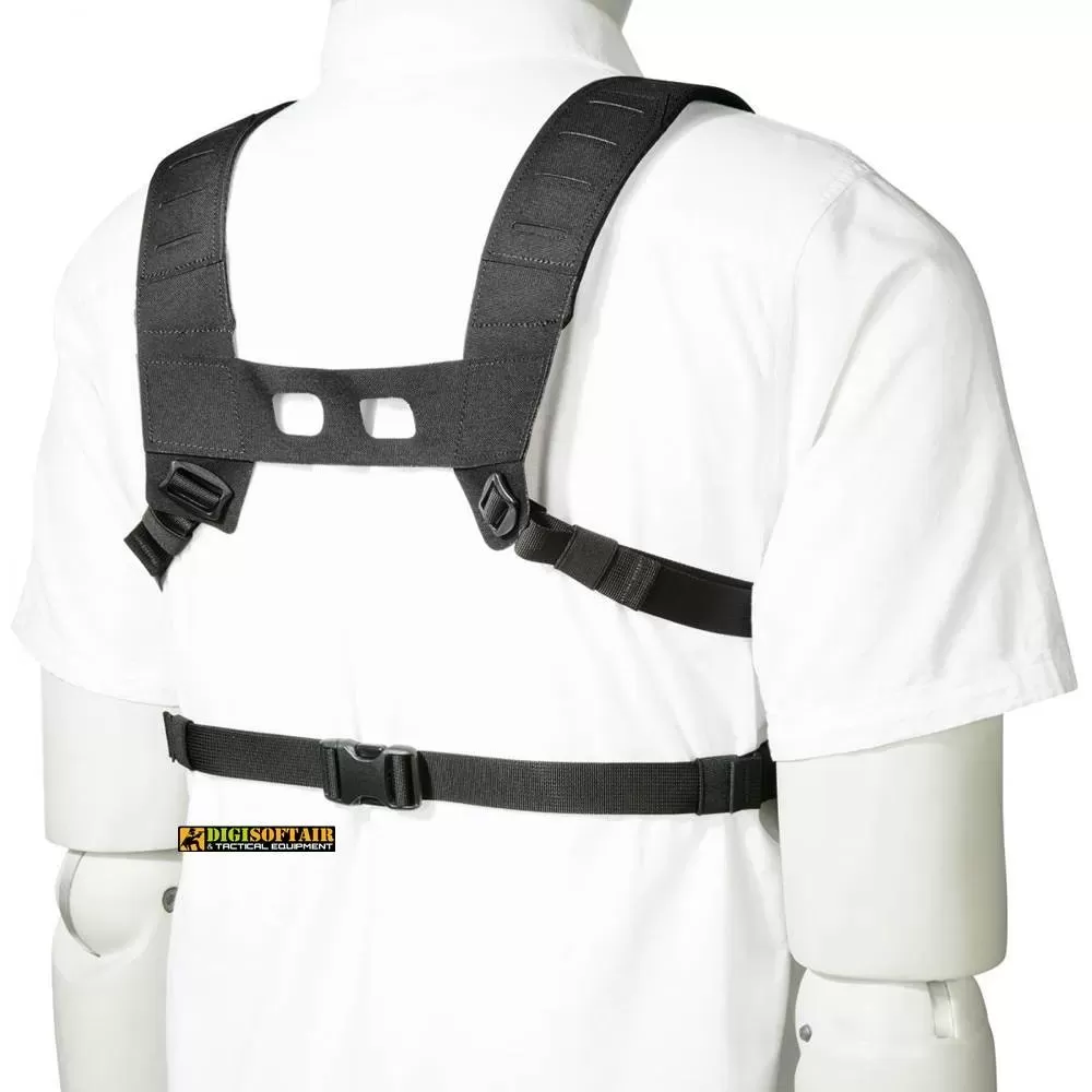 Laser-cut MOLLE system: The rig features a laser-cut MOLLE system, allowing for easy attachment of compatible pouches and accessories.