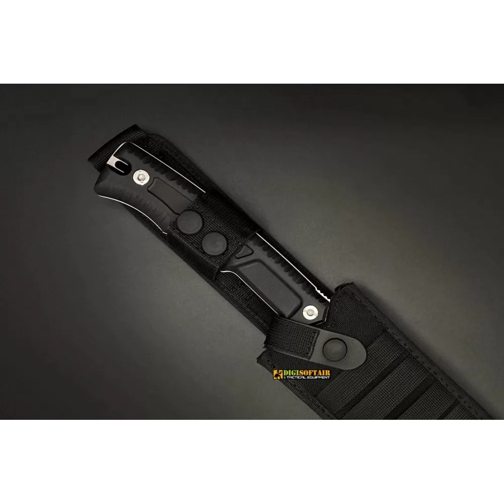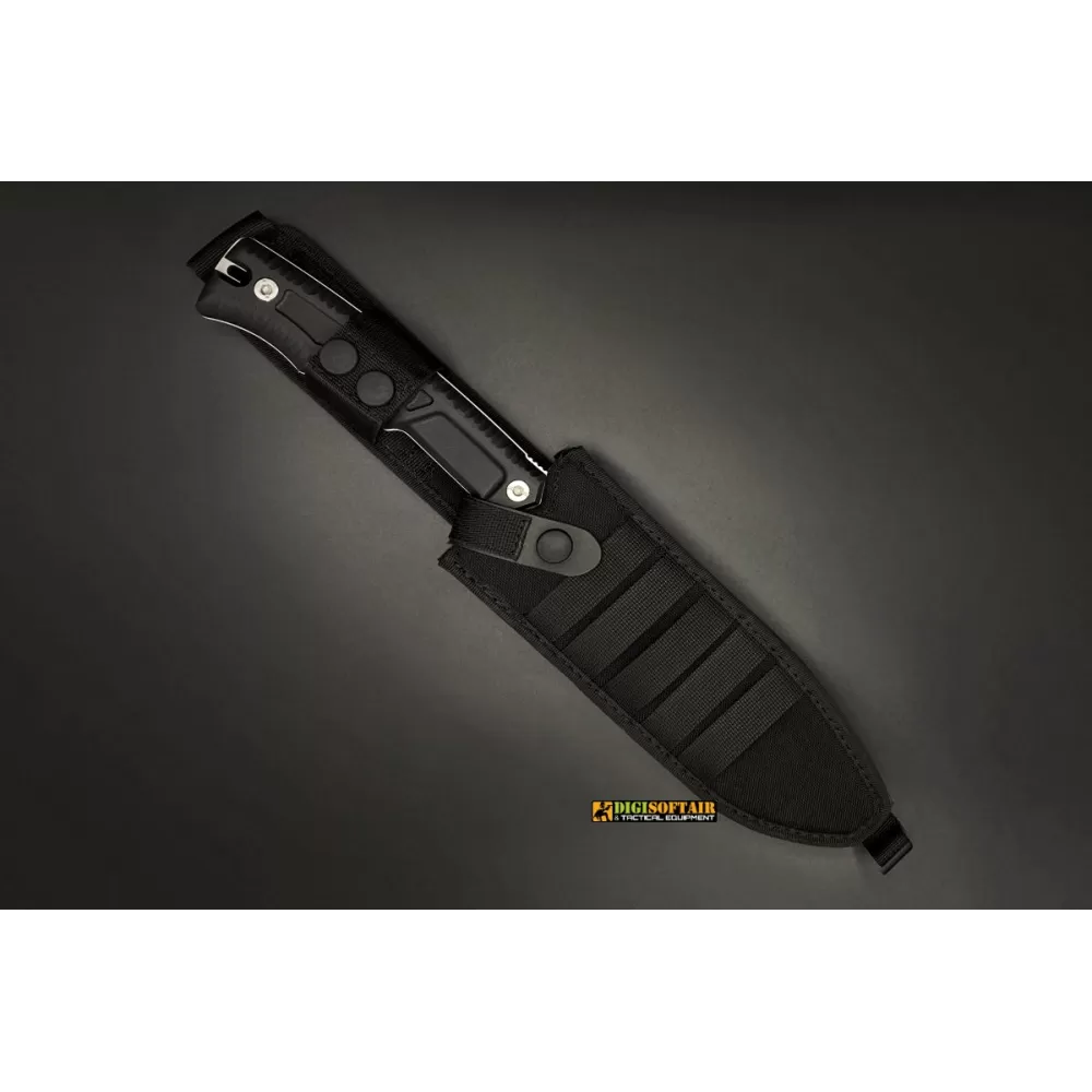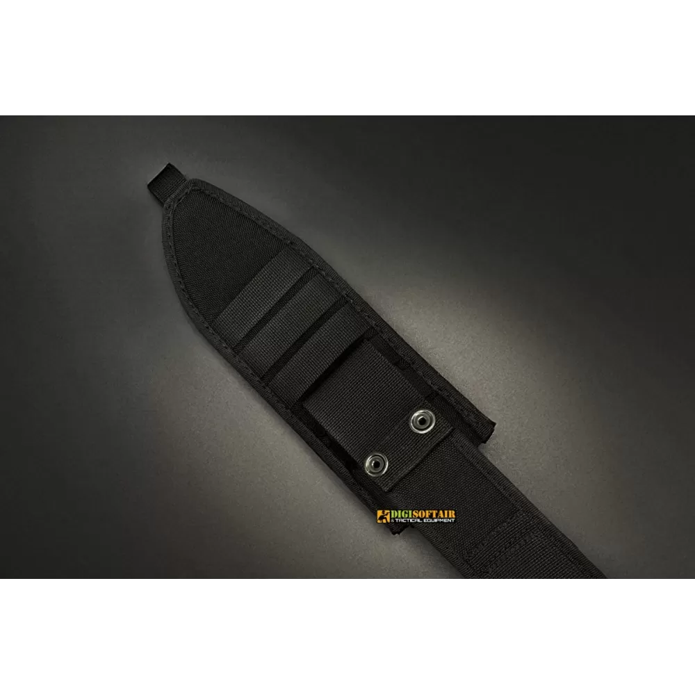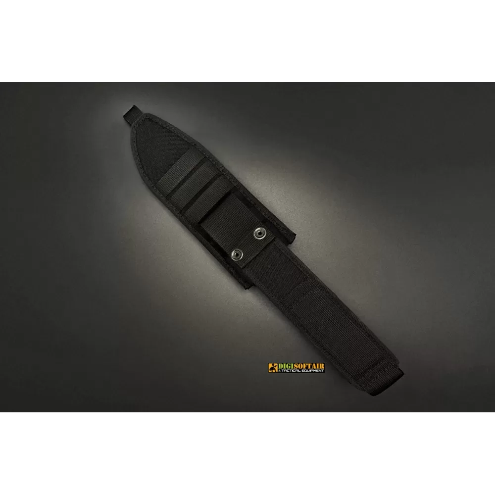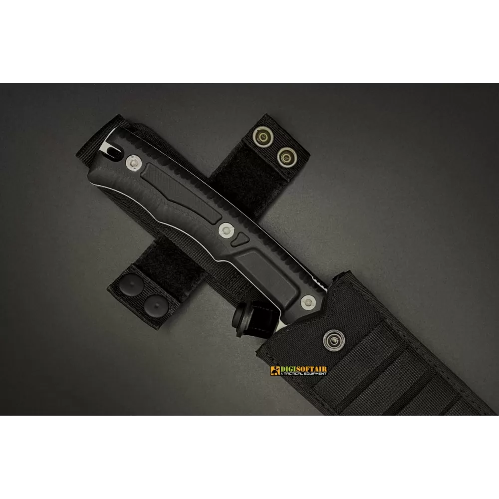 - Black cordura sheath with M.O.L.L.E. system: practical, versatile, and designed for both left-handed and right-handed users.