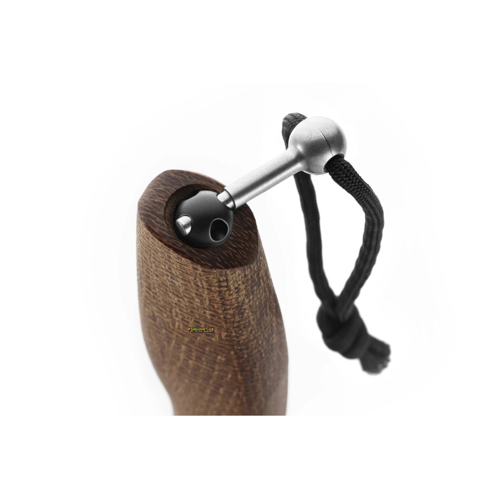 Designed to blend structural strength with refined details, the Acha AH B BLN presents a dependable tool for daily carry and light field work. The sintered M390 blade with PVD and stone-washed treatment ensures long edge life and low reflectivity. The full tang passes through the handle and is secured with an original steel nut allowing controlled disassembly for cleaning and maintenance. The SOLID Burlap Micarta handle offers secure ergonomics, while the 3D CNC titanium guard provides precise mechanical integration between blade and grip.