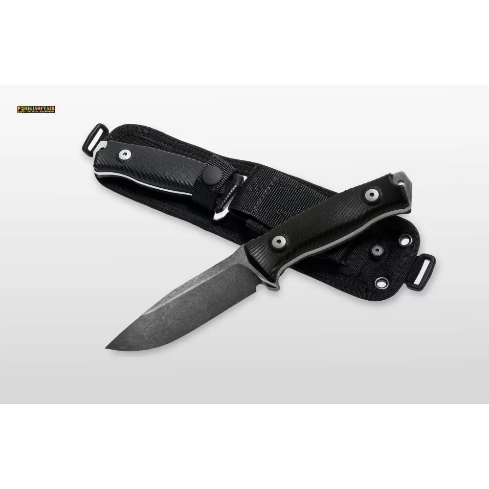 A rugged, well-balanced fixed blade: the M5B G10 pairs a 115 mm Sleipner steel blade with a robust profile and anti-glare black surface treatment. The substantial blade thickness provides rigidity for demanding tasks while the textured G10 handle ensures a secure grip in wet conditions or when wearing gloves. Supplied with a Cordura sheath and protective packaging, the knife is ready for belt carry and field deployment.