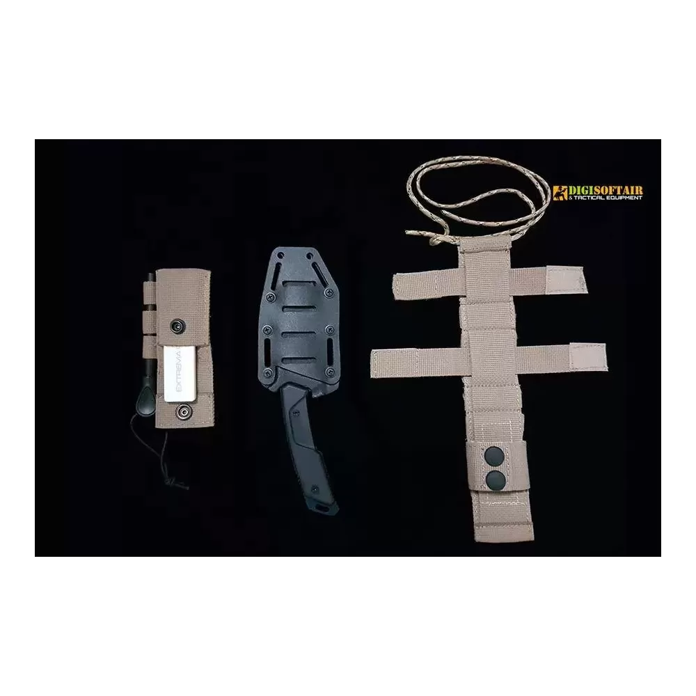 Extrema Ratio Sethlans D2 Black: 107 mm D2 blade (60 HRC) with EXP DARK coating, G10 handles, lightweight Kydex sheath and M.O.L.L.E mini-pouch (stone + firesteel).