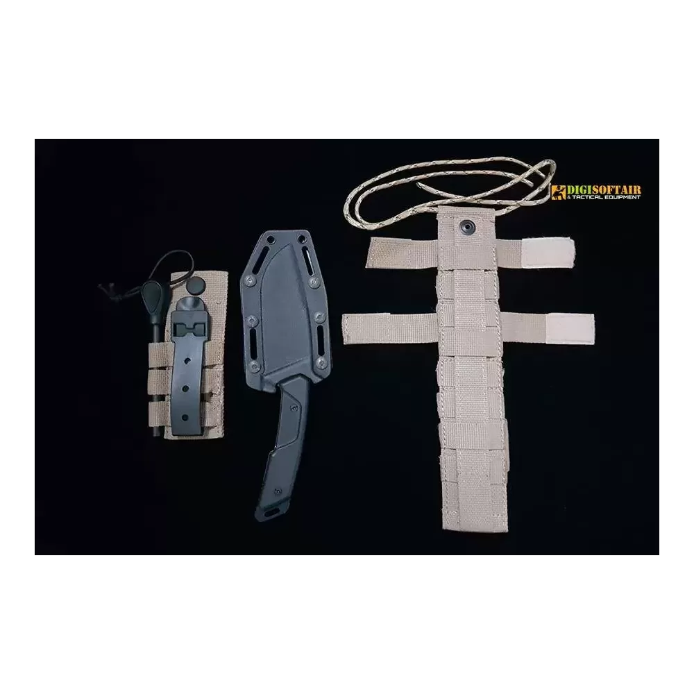 Kit: lightweight removable Kydex sheath with M.O.L.L.E mini-pouch containing a dual-grit sharpening stone and a firesteel.