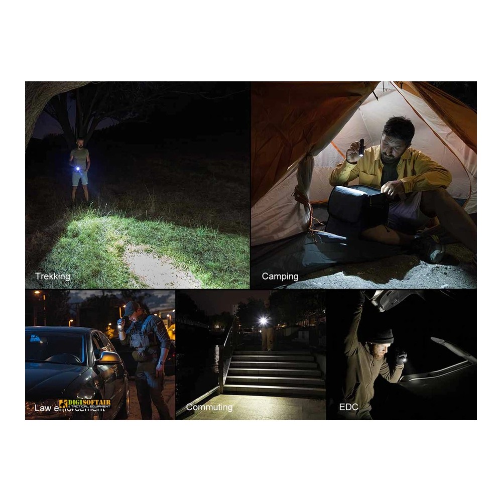 Compact, customizable EDC flashlight with 1300 lm, 354 m beam distance, included 18350 rechargeable battery and USB-C charging. Rugged A6061-T6 body with HAIII finish and IP68 rating.