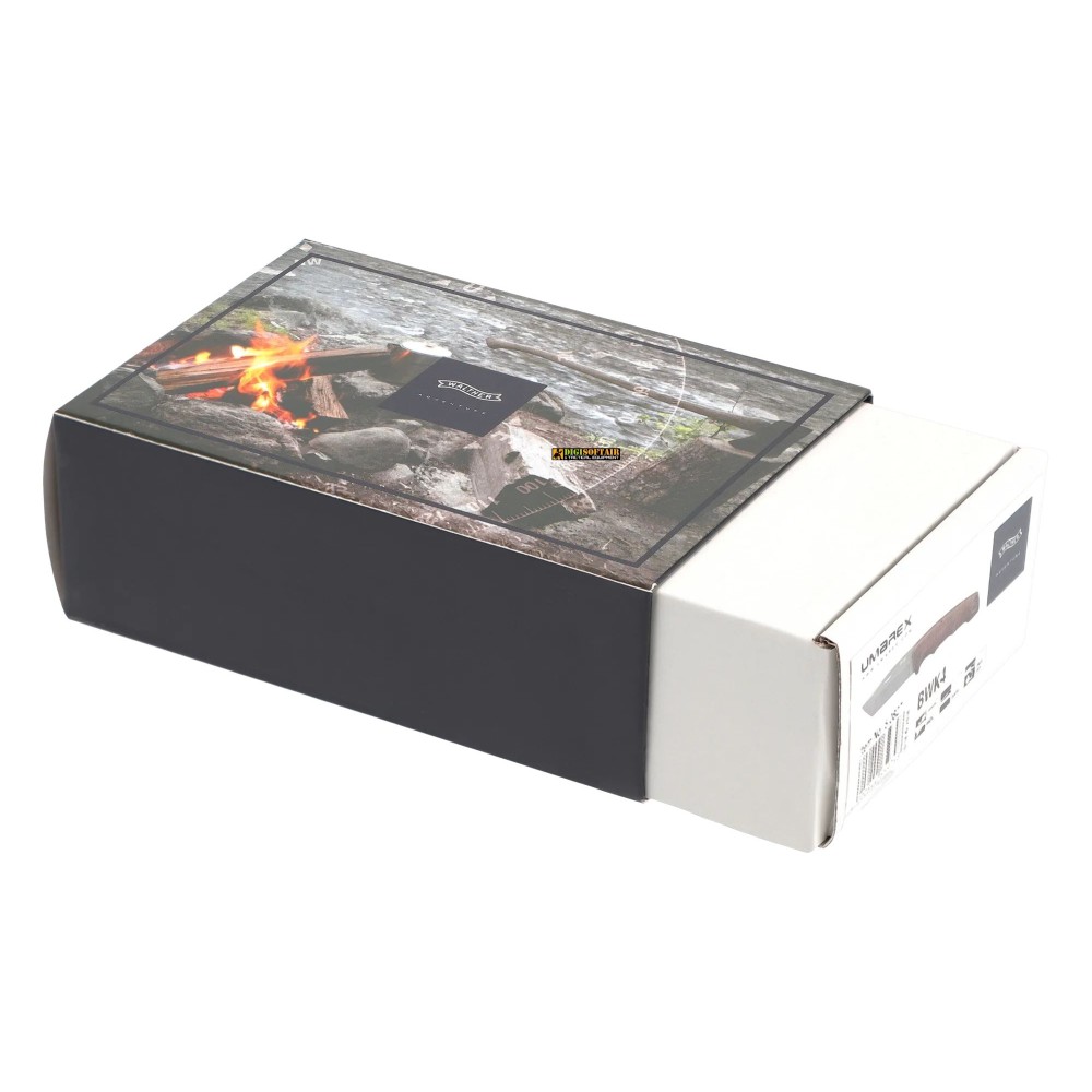 The Walther BWK 4 is a folding knife that combines selected materials and functional design: the 94 mm 440C steel blade offers high cutting performance and durability, while the 3.2 mm blade thickness provides robustness. The walnut wood handle with steel inlays blends style and secure grip, and the liner-lock closure ensures reliability during use. With an overall length of 225 mm and weight of 172 g, this model hits a balance between size, performance and everyday usability—ideal for outdoor use, EDC or daily tasks.