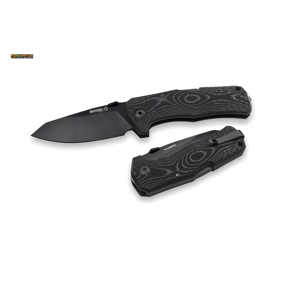 Il Lionsteel TM1 è equipaggiato con una lama in acciaio Sleipner, disponibile con nera. È l'unico coltello con tecnologia SOLID® knife ad avere il sistema di blocco lama lock back, che assicura lunga durata al meccanismo di blocco. Il manico è ottenuto dalla fresatura a 4D di un unico blocco di Micart, La clip in acciaio inossidabile può essere montata su entrambi i lati della scocca.