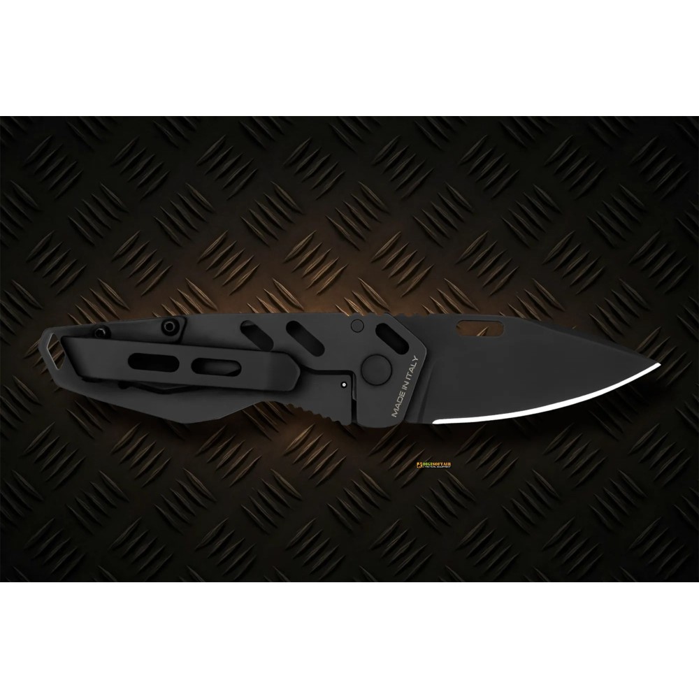 ANT SP Total Black: compact folding EDC with Böhler N690 DLC blade 46 mm, anticorodal anodized aluminium handle. Stealthy, robust and mission-ready.
