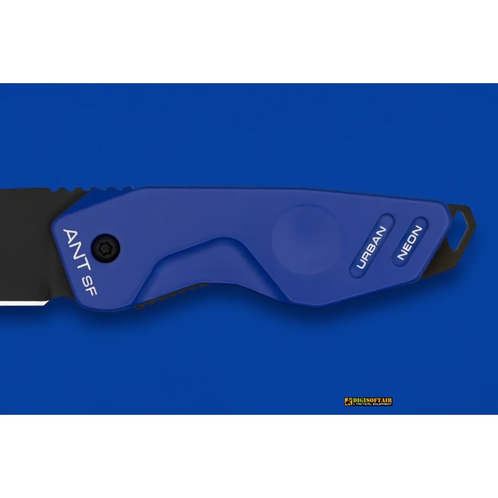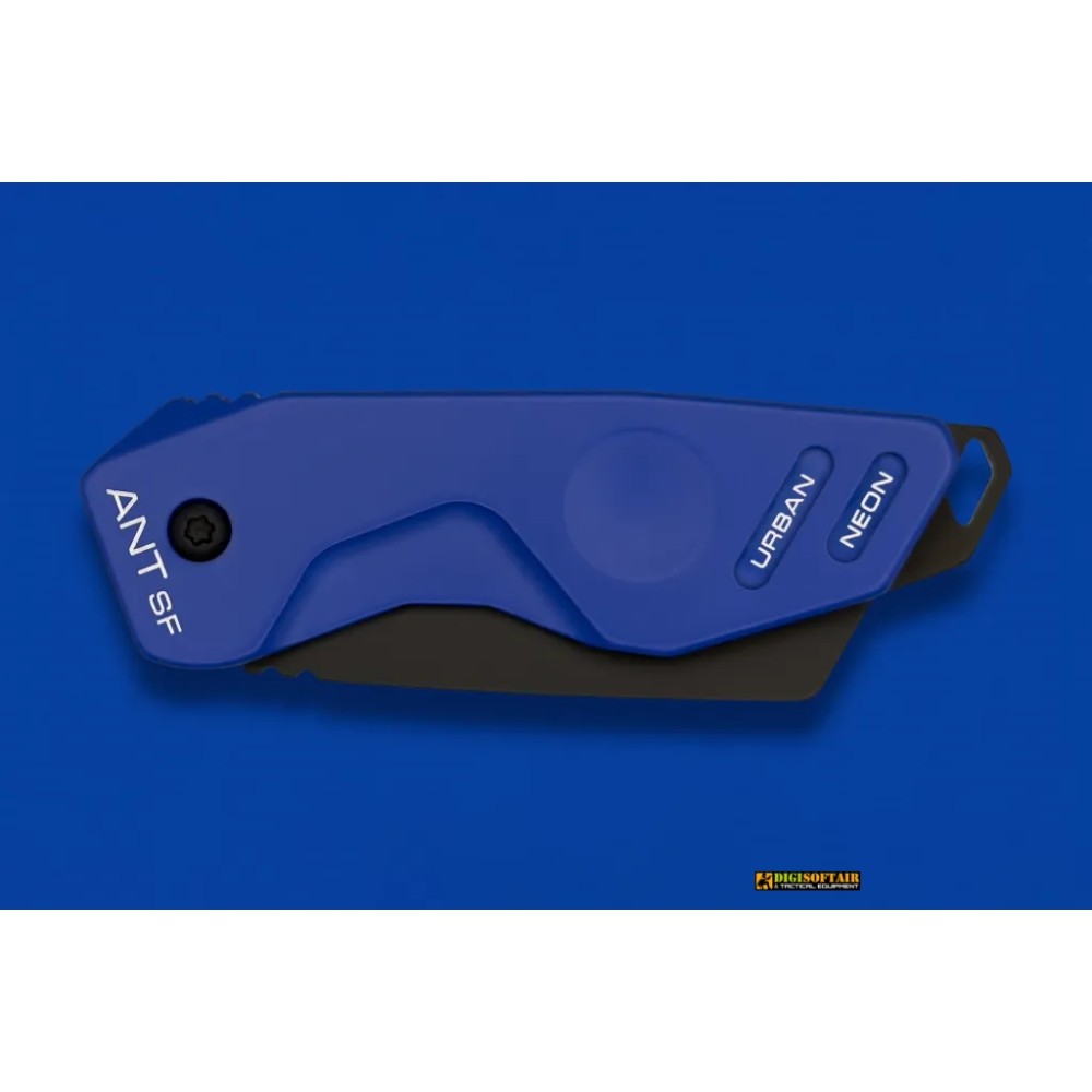 ANT Urban Neon SF Blue/Black: compact folding EDC with Böhler N690 58 HRC DLC blade and anodized aluminium handle, bold urban design and reliable daily performance.