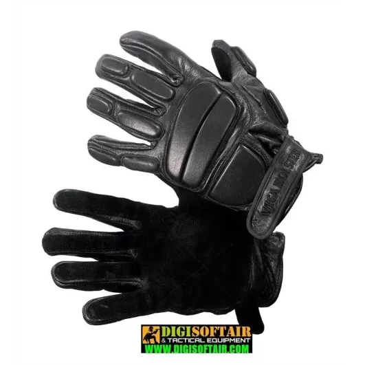 With anatomic padded on the Back and on the fingers, adjustable velcro clousure, design for operative mission, riots or hardcore assaults where is request an extreme protective and resistent glove. Elastic retention.