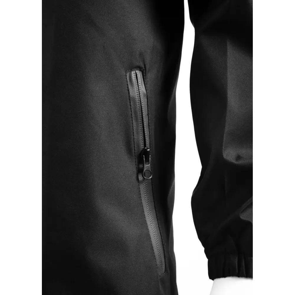 Rainproof waterproof jacket, with 100% treated polyester outer fabric. Designed to keep you dry and comfortable when the rain begins to fall, yet convenient to carry in your bag or backpack when you don't need it. All the hinges present are waterproofed.