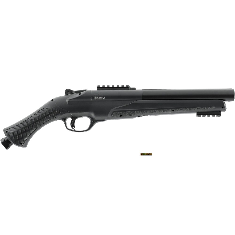 The Tactical Shotgun HDS 68 combines power and speed with its double-barrel design. Featuring a Quick-Piercing System, it’s always ready for action. A light tap on the bottom of the grip punctures the CO₂ capsule, with an optical and tactile pressure indicator showing when the shotgun is ready to fire. Equipped with a Picatinny rail under the barrel, it allows for additional accessory attachments. The .68 caliber accommodates a wide range of T4E ammunition, including roundballs and precisionballs, which can be fired individually or simultaneously from both barrels.