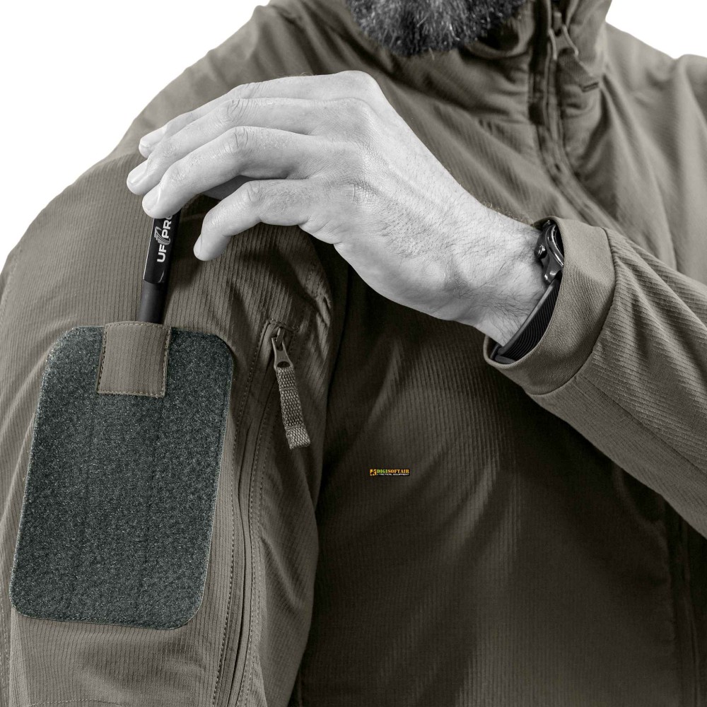 Pocket configuration is optimized for operational access: front pockets with mesh lining for ventilation and upper-arm pockets with hook-and-loop areas and pen holder for quick access to essentials. The jacket packs compactly for backpack carry and can be used as a mid-layer or lightweight outer shell. Material selection and construction make the Hunter FZ Gen.3 suitable for professionals who need technical performance in a low-profile garment.