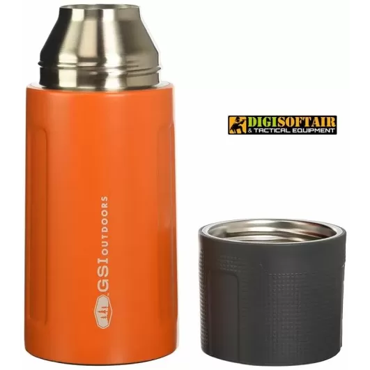 - Plastic exterior cap adds additional insulation and doubles as a cup.