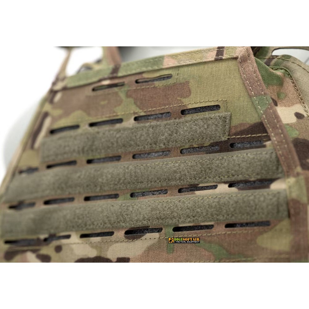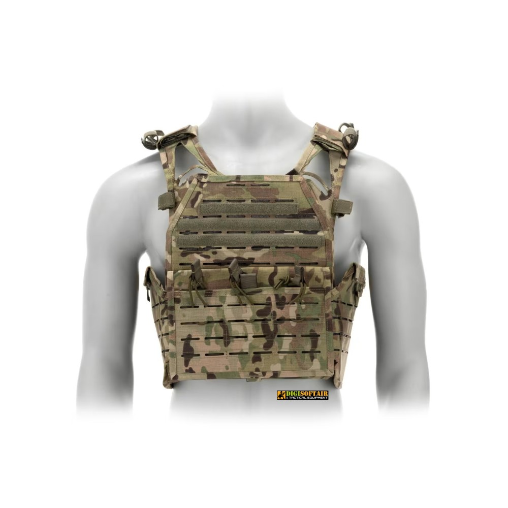 Lightweight and compact Multicam plate carrier designed for comfort and mobility during tactical use and airsoft activities.