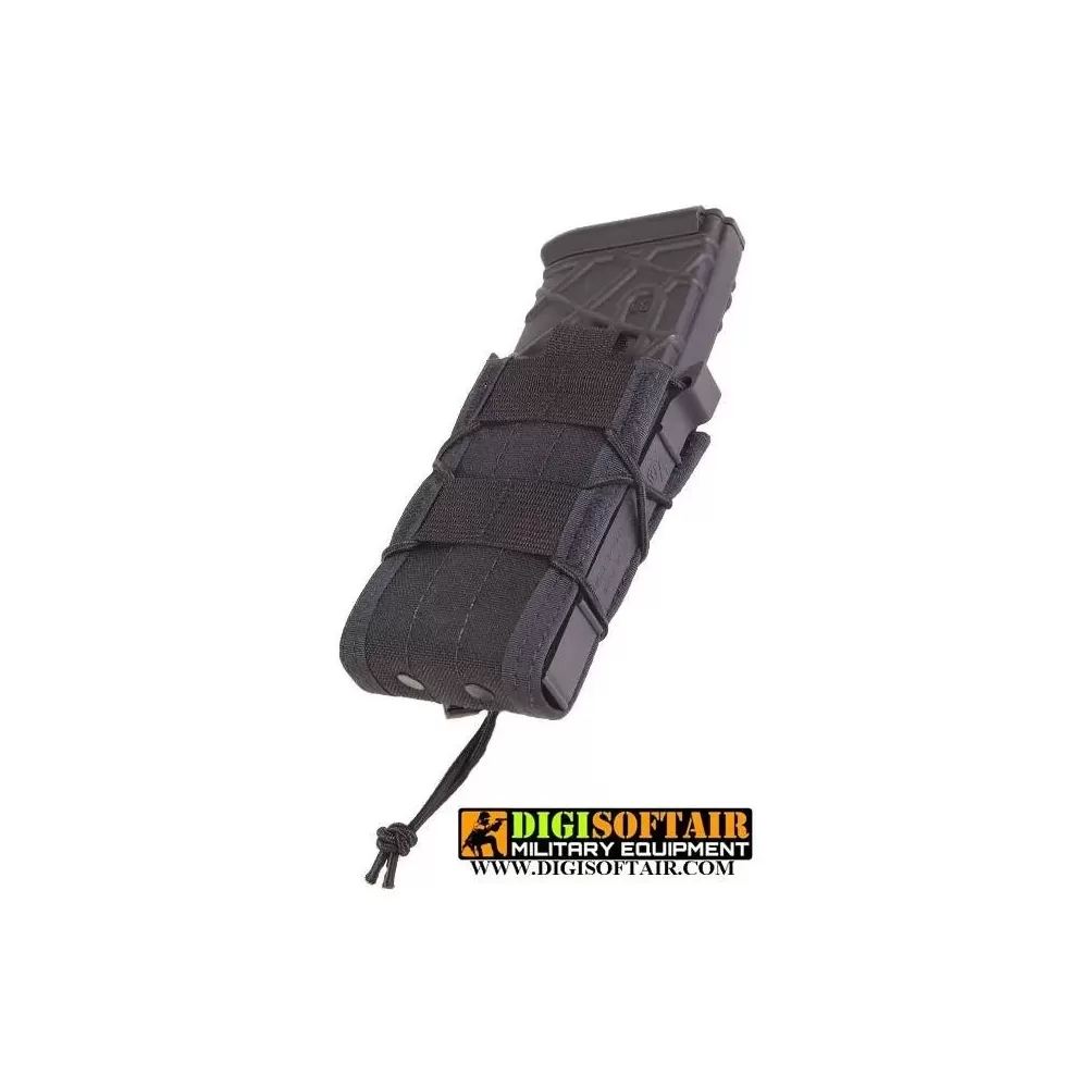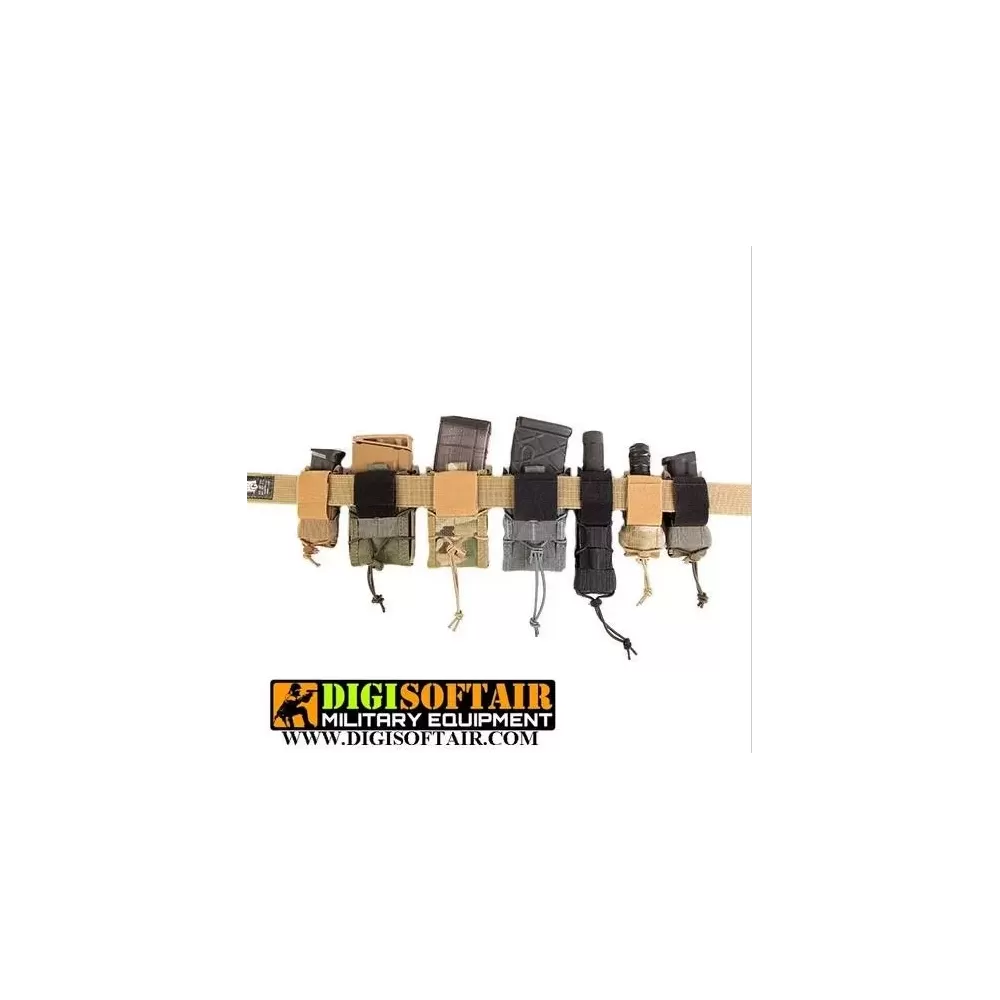 This unique belt mounted pouch uses injection molded polymer sides, Cordura™ front and back, and shock cord lacing to lock just about any rifle magazine into place. USGI, HK, PMAG, ARC, FAL, AK 30/ 40, LR20 and M14 magazines are all held securely and deployed easily and silently on demand.