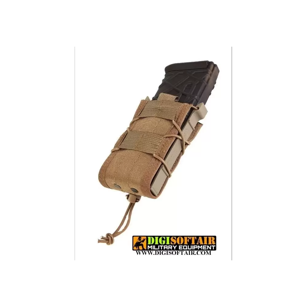 This unique belt mounted pouch uses injection molded polymer sides, Cordura™ front and back, and shock cord lacing to lock just about any rifle magazine into place. USGI, HK, PMAG, ARC, FAL, AK 30/ 40, LR20 and M14 magazines are all held securely and deployed easily and silently on demand.