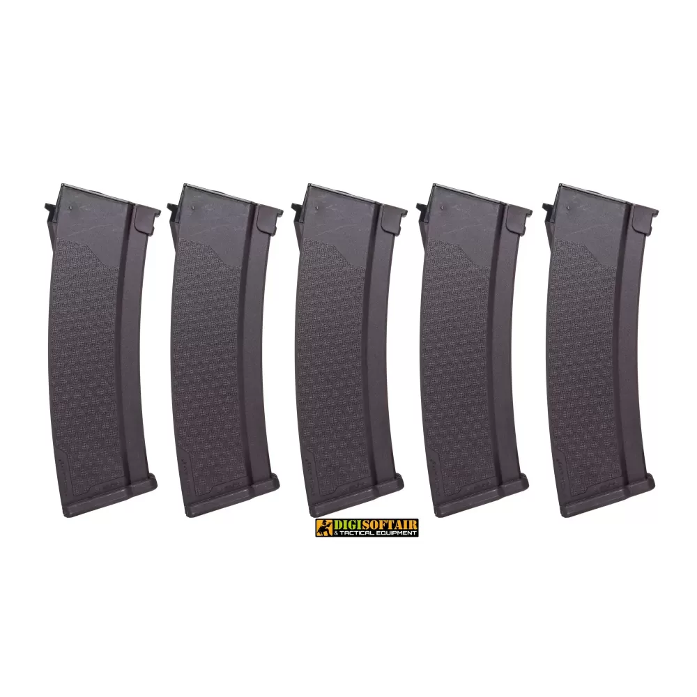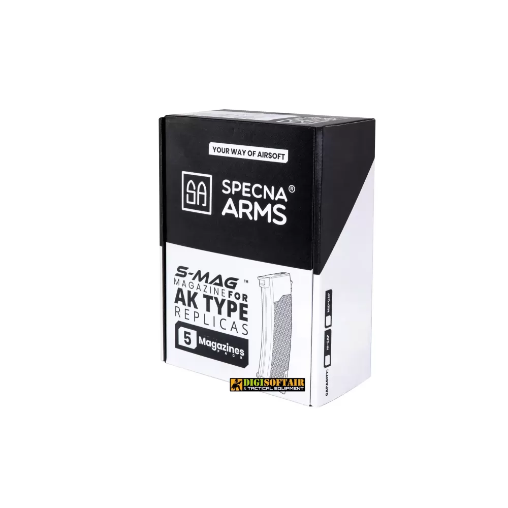 Set of 5 Mid-Cap Magazines with 175 BB's S-Mag for J Series Replicas, in Dark Brown color, branded by Specna Arms. This magazine is specifically designed for AK series replicas, offering reliable performance and increased realism for your airsoft sessions.