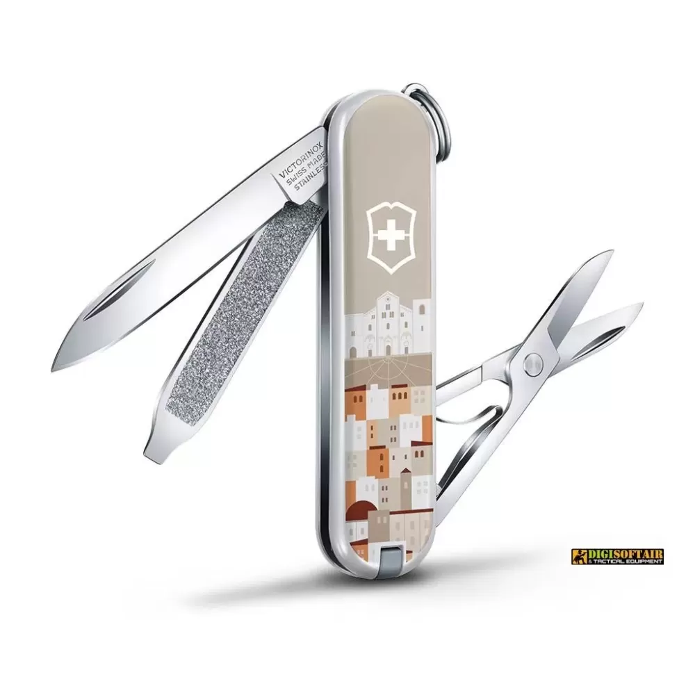 Each pocket knife comes with a gift box in line with the graphics and colors of the city.
