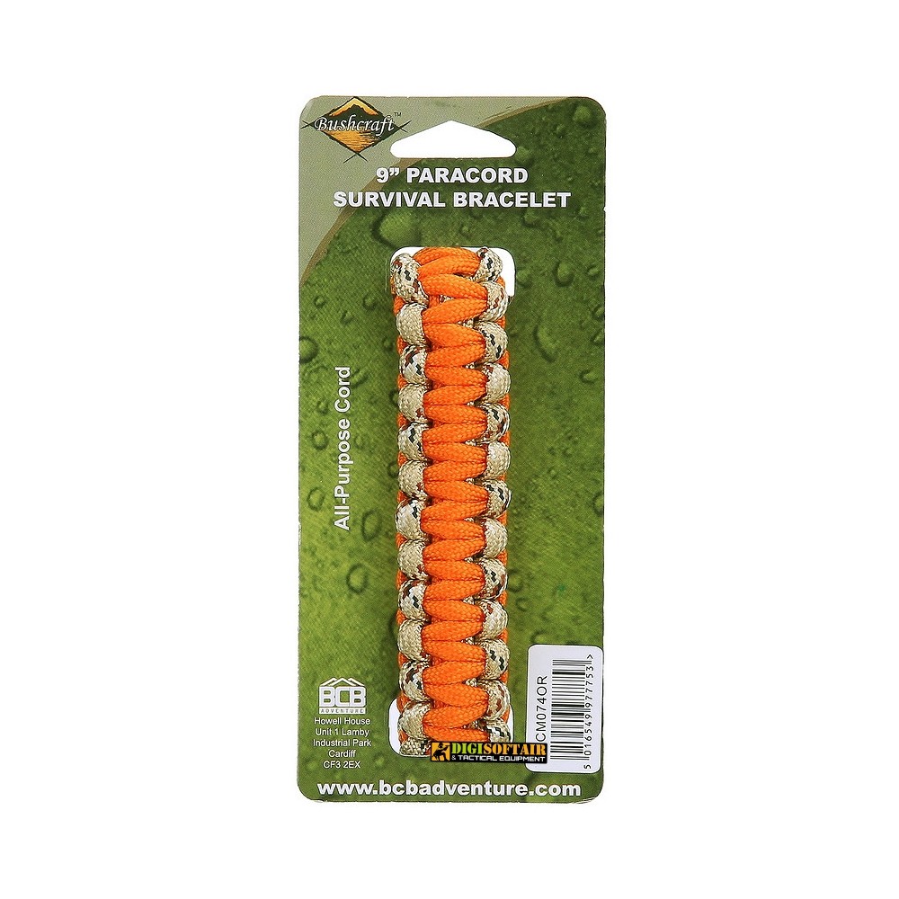 Included: BCB paracord bracelet with metal buckle — orange