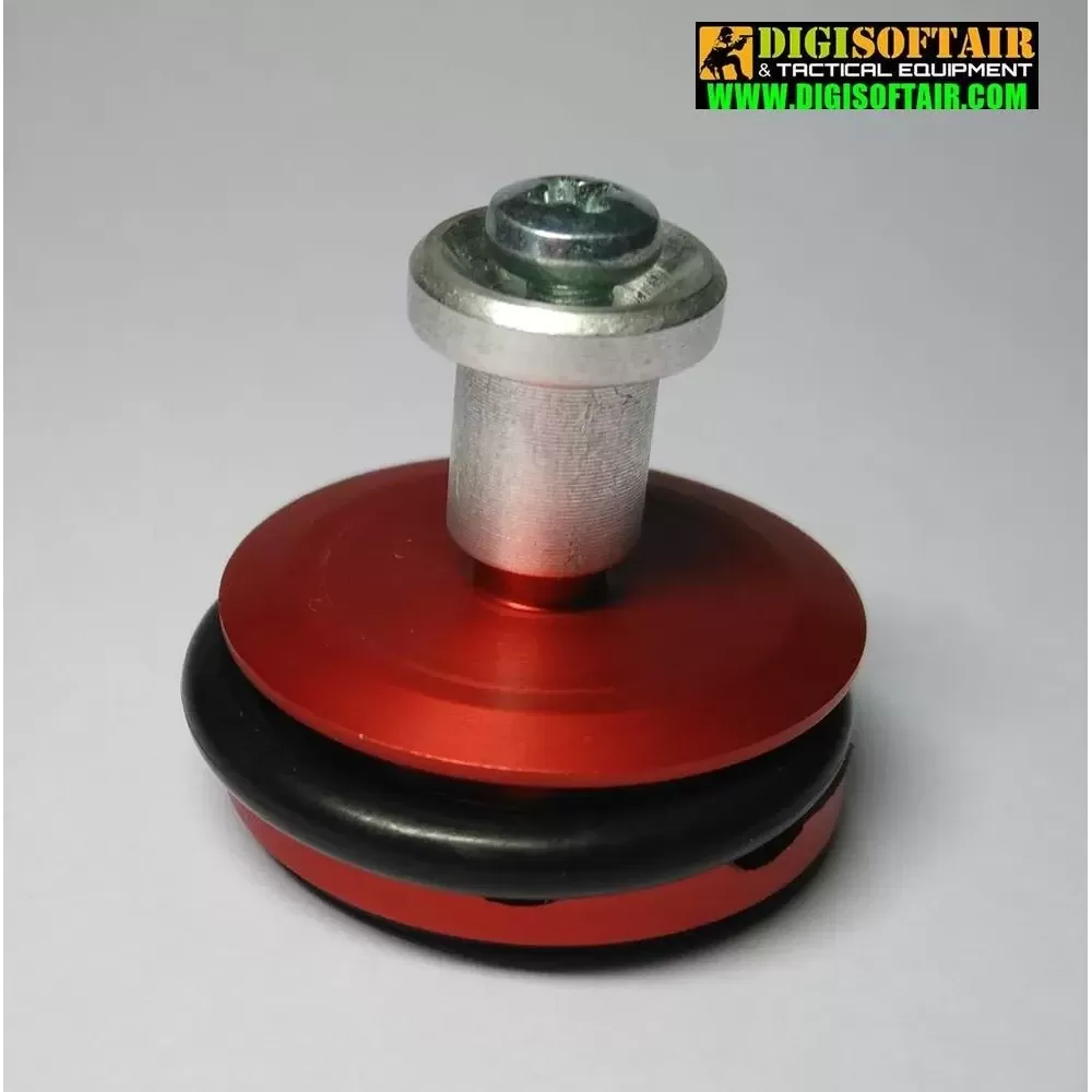 Silenced Piston head made with CNC machining. Thanks to the implementation of the abutment o-ring, the sound will be lowered by making the ASG very silent, while the innovative conical shape without the presents of the anti-vacuum holes on the front minimizes the air-consuming in compression phase, while the central body made to obtain a 60° cone in a way that all the air in the compression phase is concentrated at the base of the cone, pushing it and sending it directly inside the the cylinder head’s nozzle, avoiding the formation of air vortices. Ideal for low fire accruals or Sniper configurations.