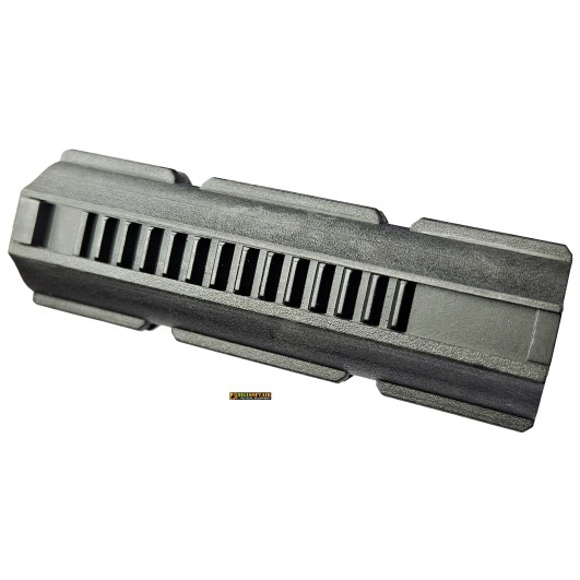 An essential upgrade for achieving smooth, consistent piston‑rack cycles: the carbon‑fiber–reinforced technopolymer body provides lightweight strength, while the Metal Injection Molding teeth deliver precise, long‑lasting engagement. The ZERO‑SHOCK system absorbs mechanical stresses, extending spring and piston life even under heavy use.