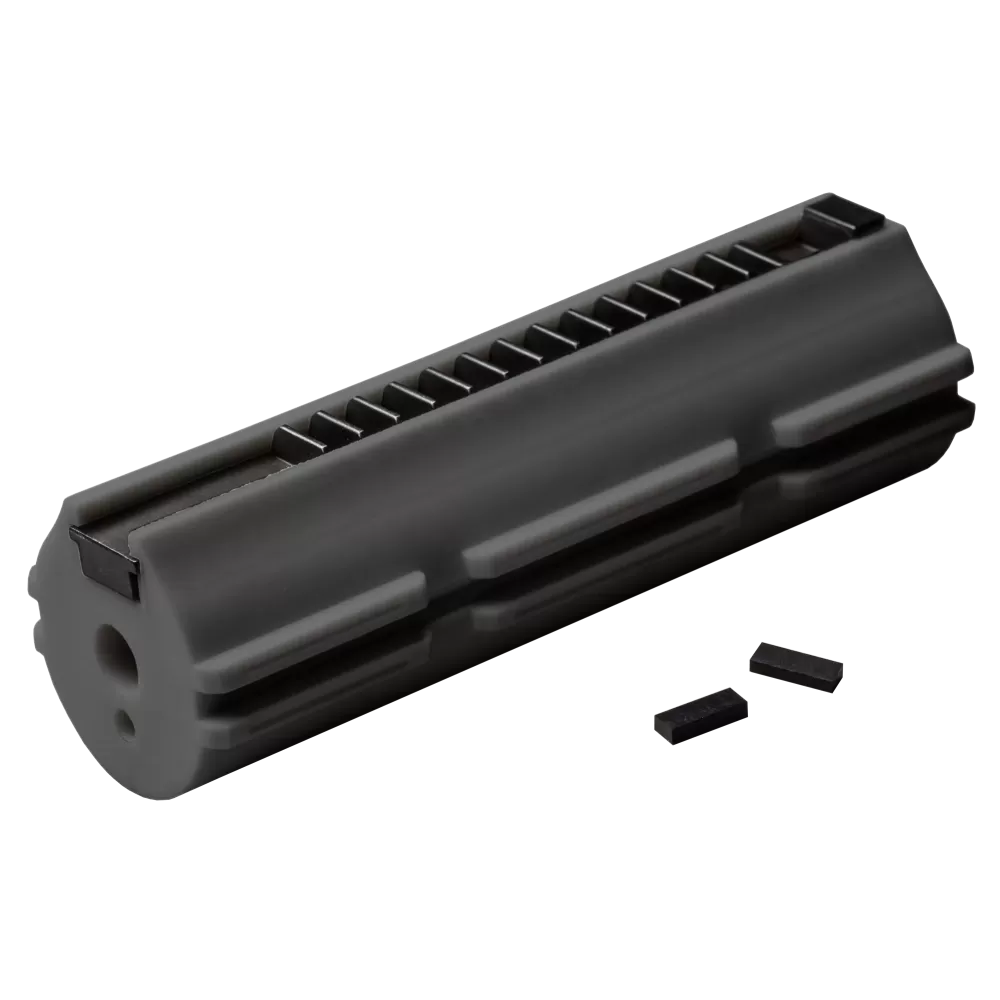 piston for airsoft replicas with body in technopolymer loaded with carbon fiber and rack with all metal teeth equipped with the patented ZERO-SHOCK system (PM04CF), Weight: 15.2 grams