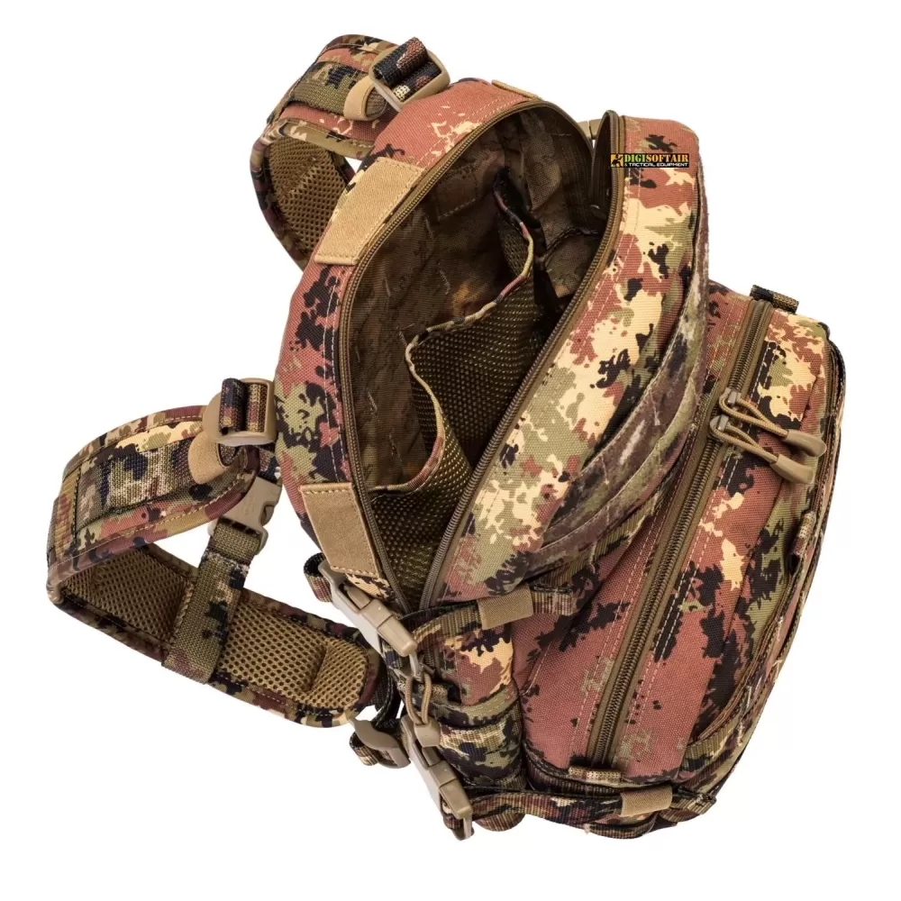 - Six vertical bands on the back for anchoring the backpack to the plate carrier.