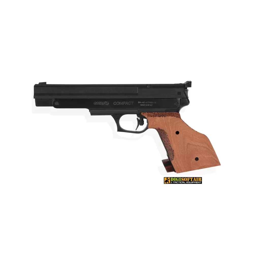 The Compact by Gamo is a competition pistol that is ideal for those who want to start sports shooting. Its particular balance and precision, the exclusive design and the ergonomic handle make it suitable for any shooter. This exceptional pistol features a prestressed power piston and a top lever system, where the pistol is cocked by lifting the top. This pistol offers excellent accuracy for practicing target shooting at distances of about 20 meters