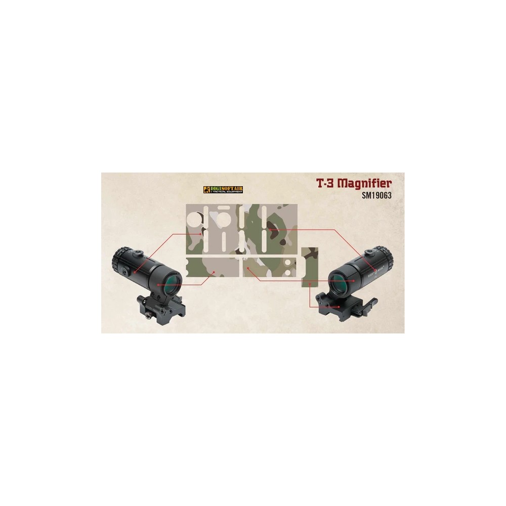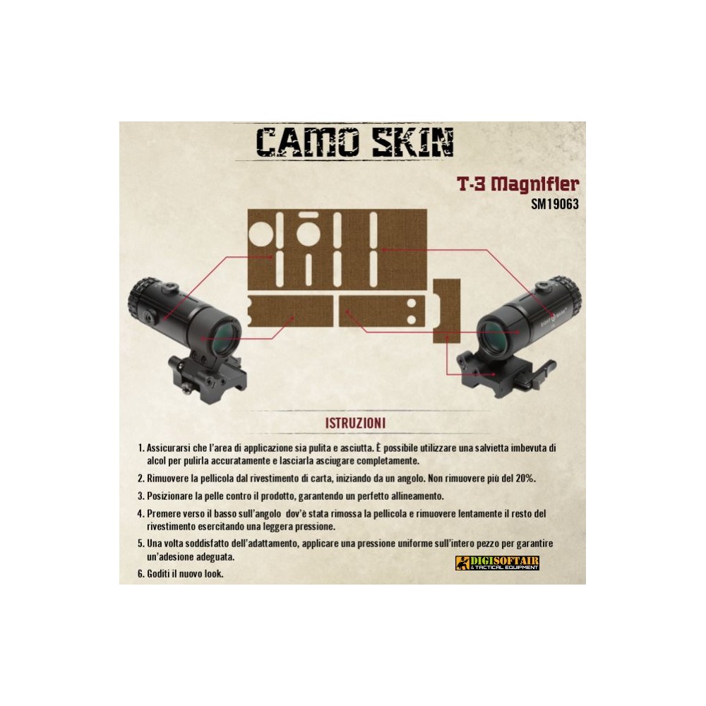 Designed for those who seek to combine functionality with tactical style, the cover for Magnifier T-3 SM19055 allows perfect integration of your optic with the rest of your gear. In addition to a more camouflaged appearance—ideal for woodland environments and outdoor operations—this skin provides added protection against scratches, impacts, and dust, helping extend the life of your sight