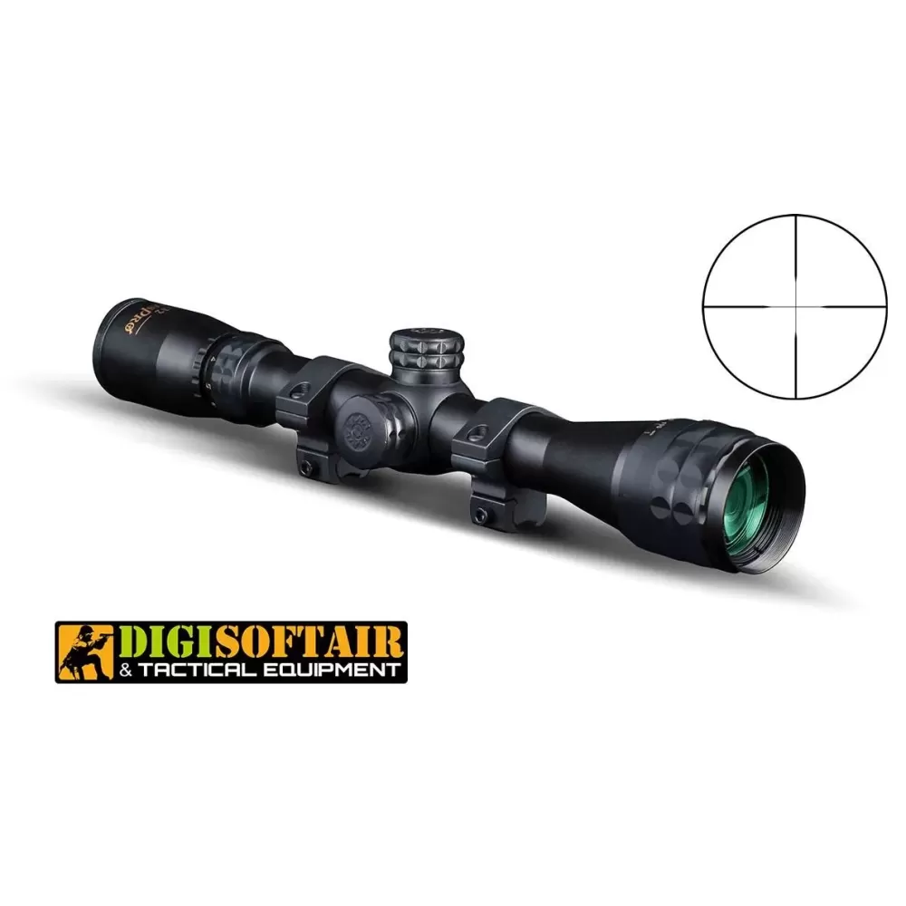 These optics are very useful both in hunting and shooting. The turrets have the two adjustment drums protected by screwed caps, unscrewing which you see in the center a bezel that allows the zeroing with the hands, the sensitivity is 1/4 of M.O.A. (each click corresponds to 7.25m at 100m), for maximum precision, the objectives are adjustable from 10yds (9 meters) to infinity, included with the optics there are the standard type mounting attachments. The 30/30 reticle is engraved on the lens, multi-layered treatment on the optics and impermeable. Instructions in 10 languages included.