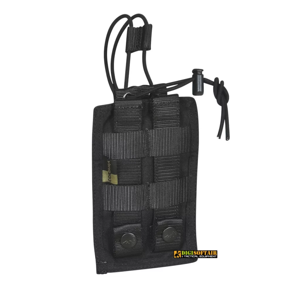 The pouch features a practical adjustable elastic loop with a side-release buckle to securely hold your radio device in place. The MOLLE snap button system allows for easy attachment of this pouch to other MOLLE gear components, requiring only two MOLLE loops.