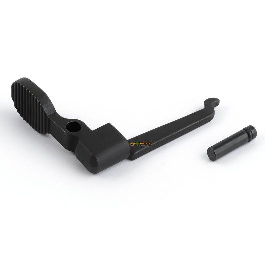 Function: ASG bolt catch lever — does not perform real firearm bolt locking; enables dummy bolt carrier closure with bolt back for maintenance.