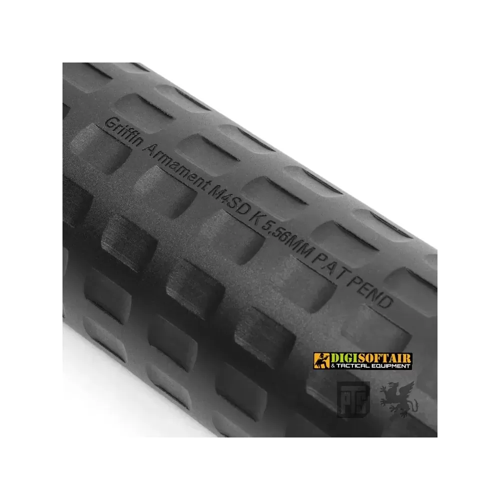 The PTS Griffin M4SD II (Black) suppressor is an excellent choice for airsoft enthusiasts seeking high-performance and long-lasting functionality. Made from super durable, ultra-lightweight aluminum, this suppressor provides the optimal combination of strength and lightness. Its unique design, licensed from Griffin Armament USA, features a grooved surface that reduces weight while ensuring long-term durability.