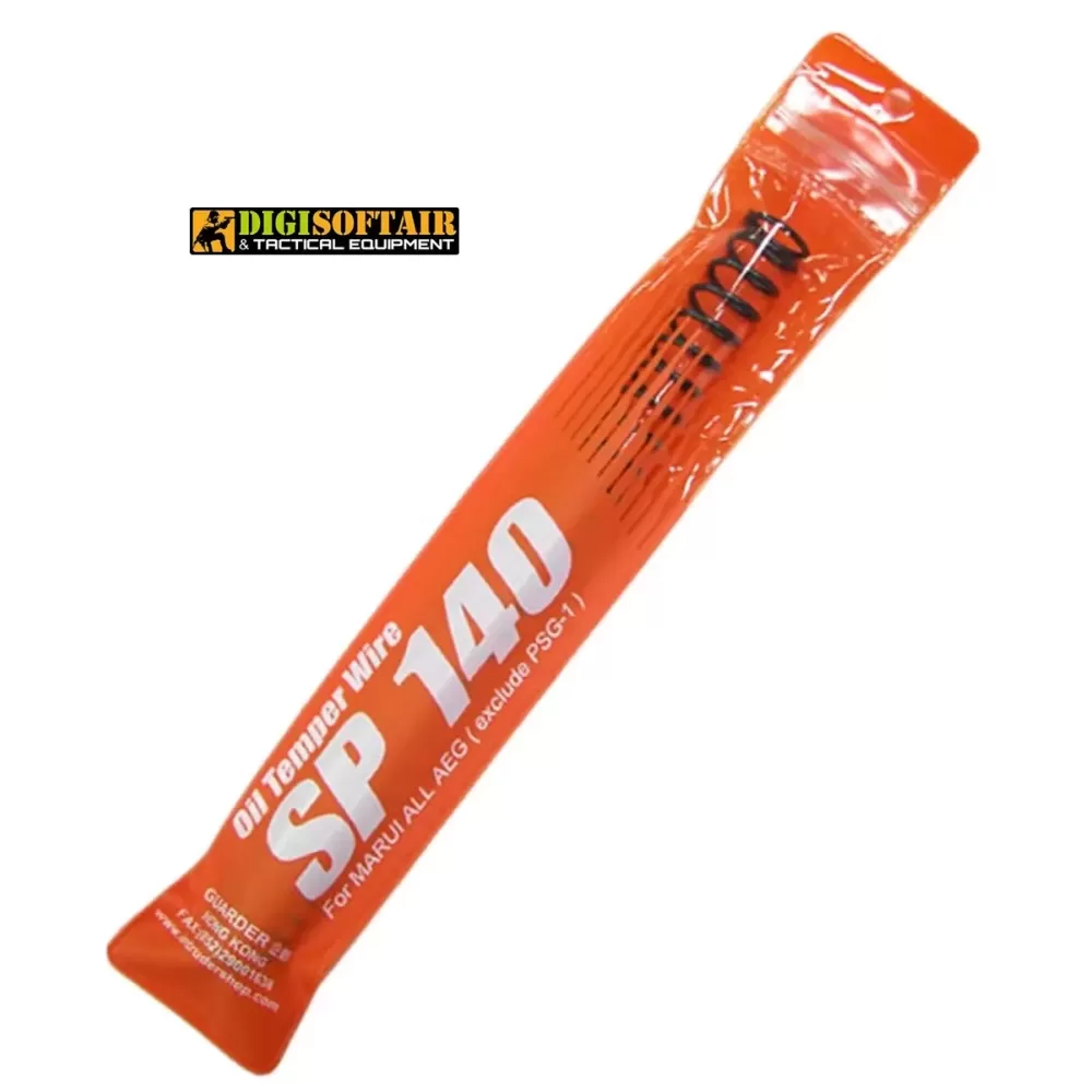 Guarder SP140 AEG tune-up spring: SiCr spring steel, heat-treated and oil-dipped, nominal strength 31.24 lbs for stable tuning results.